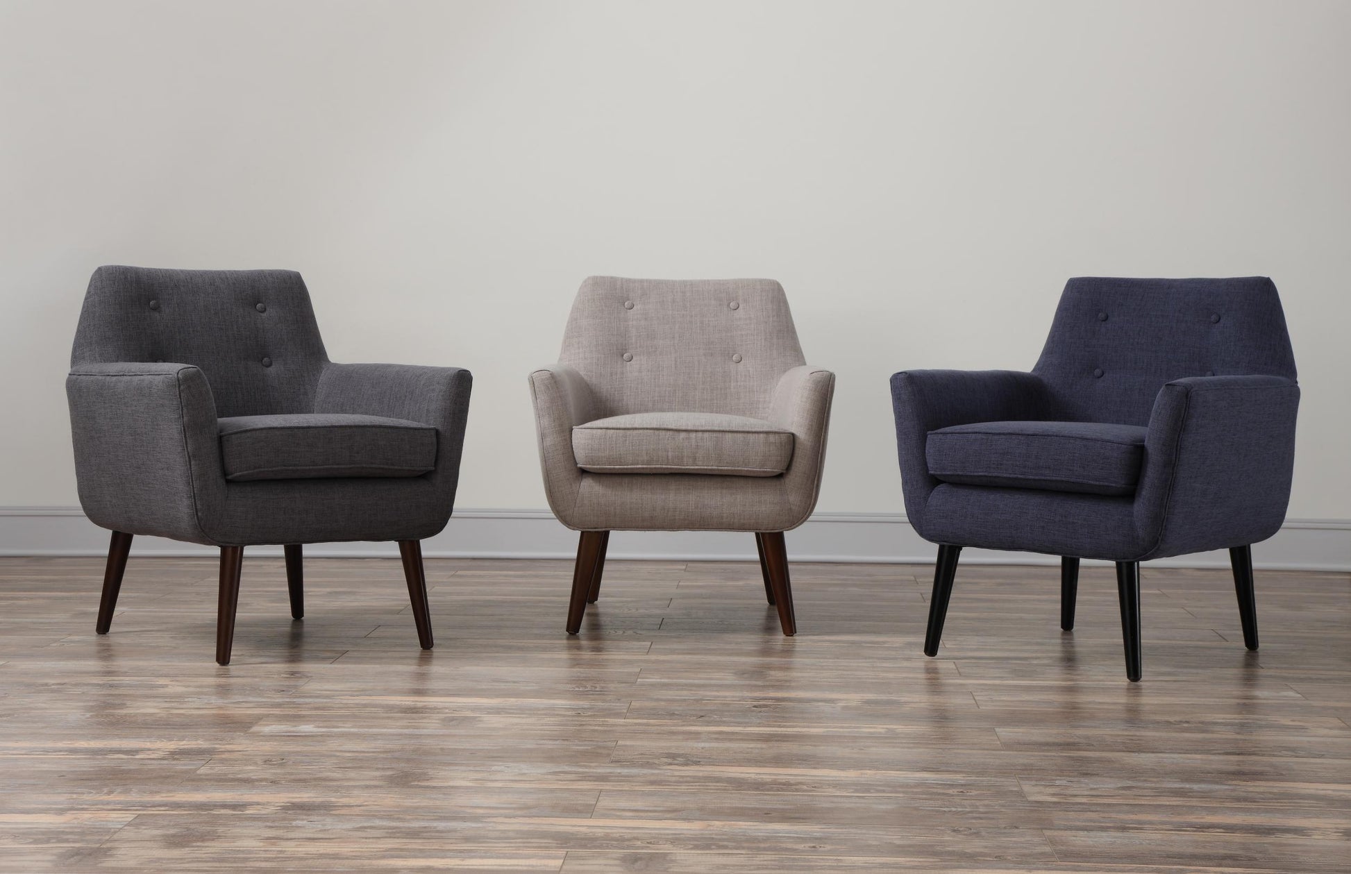 Our Clyde chair has a clean Mid-Century aesthetic while the small scale button tufting adds a pop of personality. Perched on solid wood legs, this chair is a true classic and is a fashionable addition to living rooms, bedrooms and entryways. Available in multiple color options.