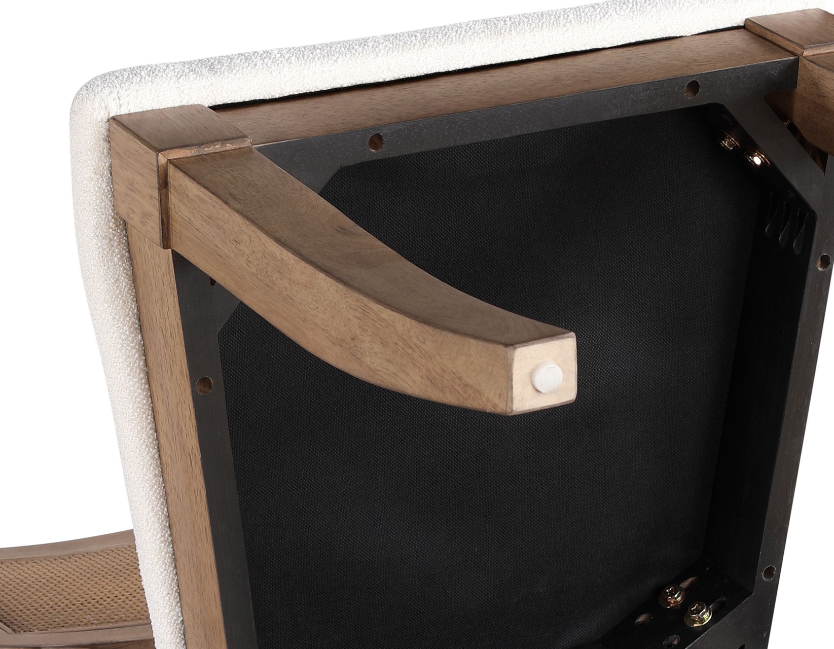 With a nod to old Hollywood glamour, the Colvin Cane Back Chair exudes sophistication. A cane back and sumptuous boucle softens the modern profile with a casual touch while hile the toffee finish adds a touch of sophistication. The elegant modern cabriole leg supports a 2..5″ cushioned seat makes sure you don’t have to suffer for your style. Elegant, glamorous and sophisticated but with casual touches that keep it from being stuffy, that’s Colvin.
