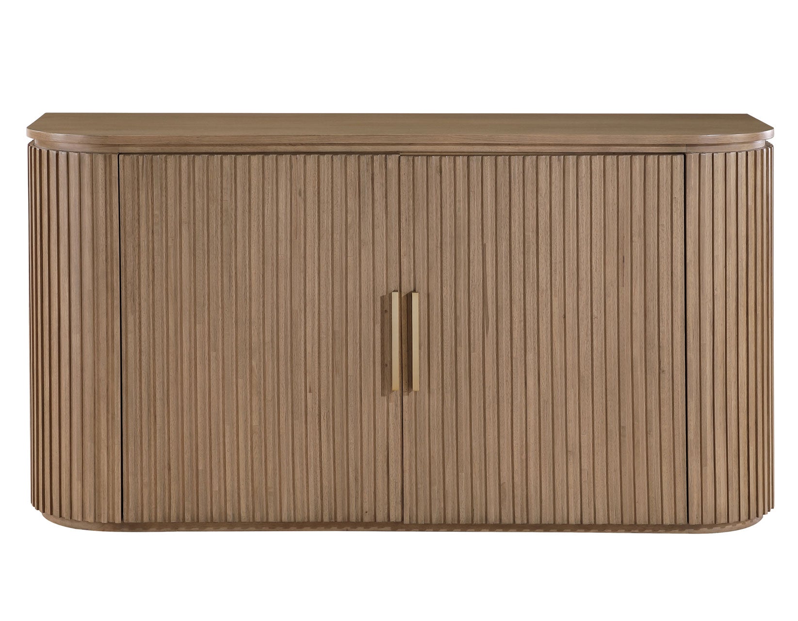 Experience the Colvin Brown Server’s modern allure with gently rounded, reeded front doors, emanating elegance. This piece blends old Hollywood glamour with generous storage and European concealed hinges for a seamless aesthetic. Two adjustable shelves within offer practicality, while satin brass hardware accents add a touch of sophistication. Revel in its romantic charm while effortlessly concealing dining essentials.