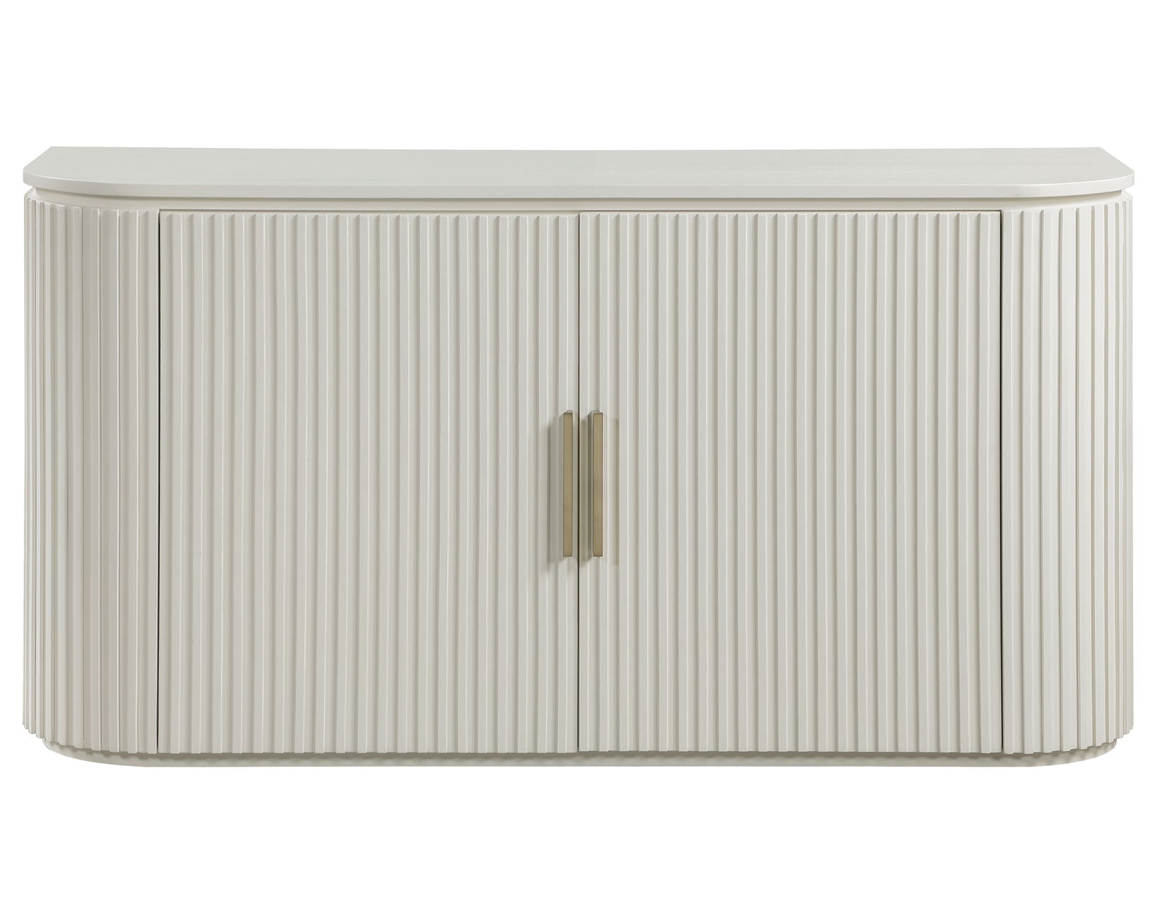 The Colvin Ivory Server presents an exquisite dining accent piece, combining modern allure with hints of old Hollywood glamor. Its gently rounded, reeded front doors create an elegant, softened profile, while European concealed hinges add to its seamless aesthetic. Inside, two adjustable shelves offer practical storage space, perfect for organizing dining essentials, while the satin brass hardware adds a refined touch of sophistication. A captivating blend of style and function, this server brings romantic charm to any dining room.