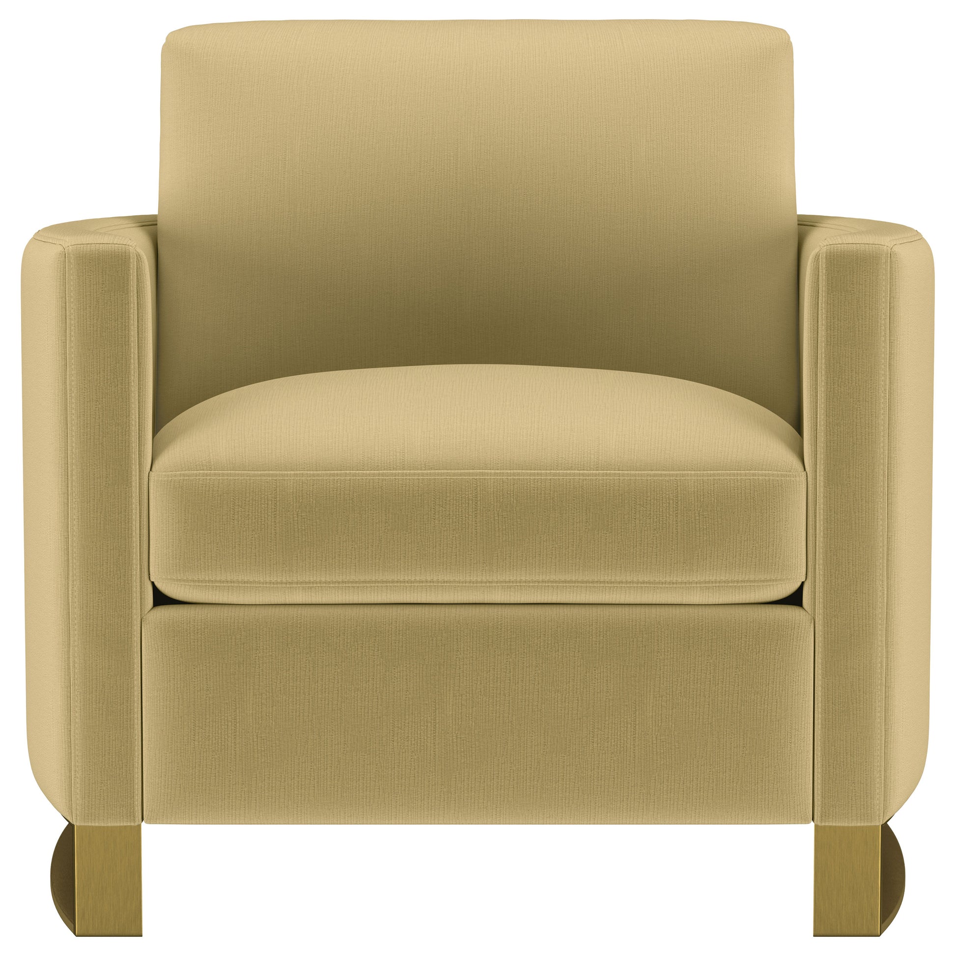 • Curved arms and gold-accented stainless steel legs add subtle luxury