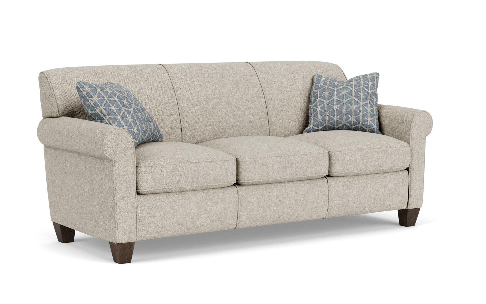 Simply tailored with classic details Dana is current and stylish, yet simple enough to withstand the test of time. This modestly scaled style is a great option for small spaces. With a tightly padded back, tailored roll arms and tall tapered feet, Dana fits classic touches into a streamlined design that lends openness to any space. Careful tailoring of all fabrics reflects matching of all elements except outside back panels and welts. Model Number: 5990-31 Dimensions 36H x 82W x 36L