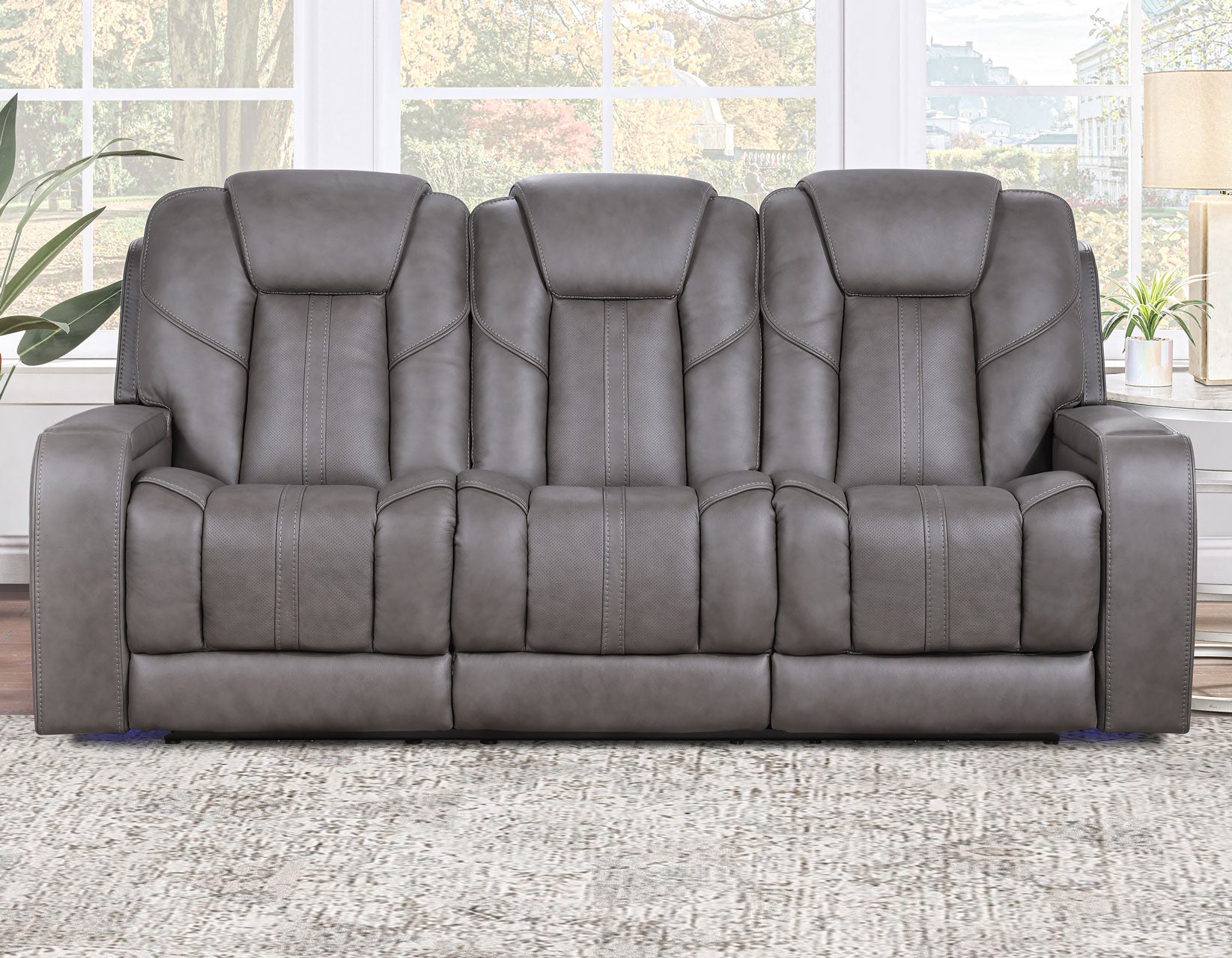 Experience the theater from the comfort of home with the Daniel Triple-Power Leather Reclining Sofa. Wrapped in plush, mossy-gray leather, this sofa is designed for immersive entertainment. Built-in speakers, a subwoofer, and vibration transponders surround you with lifelike sound, while air massage and soothing heat settings add next-level relaxation. A convenient drop-down console offers wireless charging, integrated lighting, and easy-access controls, keeping everything within reach.