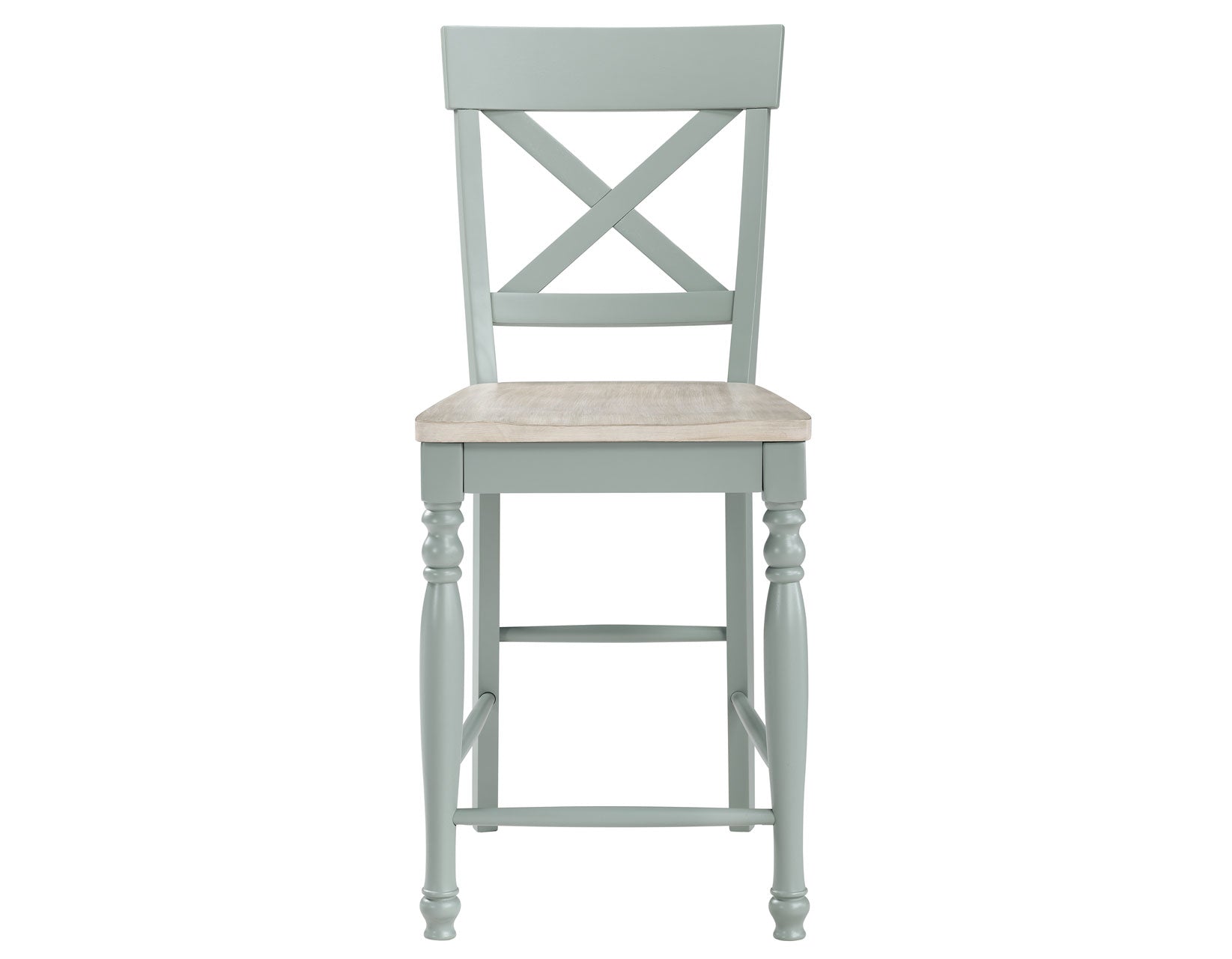 Add timeless charm to your space with the Darcy Solid Wood 24″ Counter Chair, designed for 36-inch high counters. Its modified Napoleon X-back blends traditional elegance with modern versatility, while the two-tone finish combines mint green and a natural wood seat, showcasing cool, rustic-modern appeal.