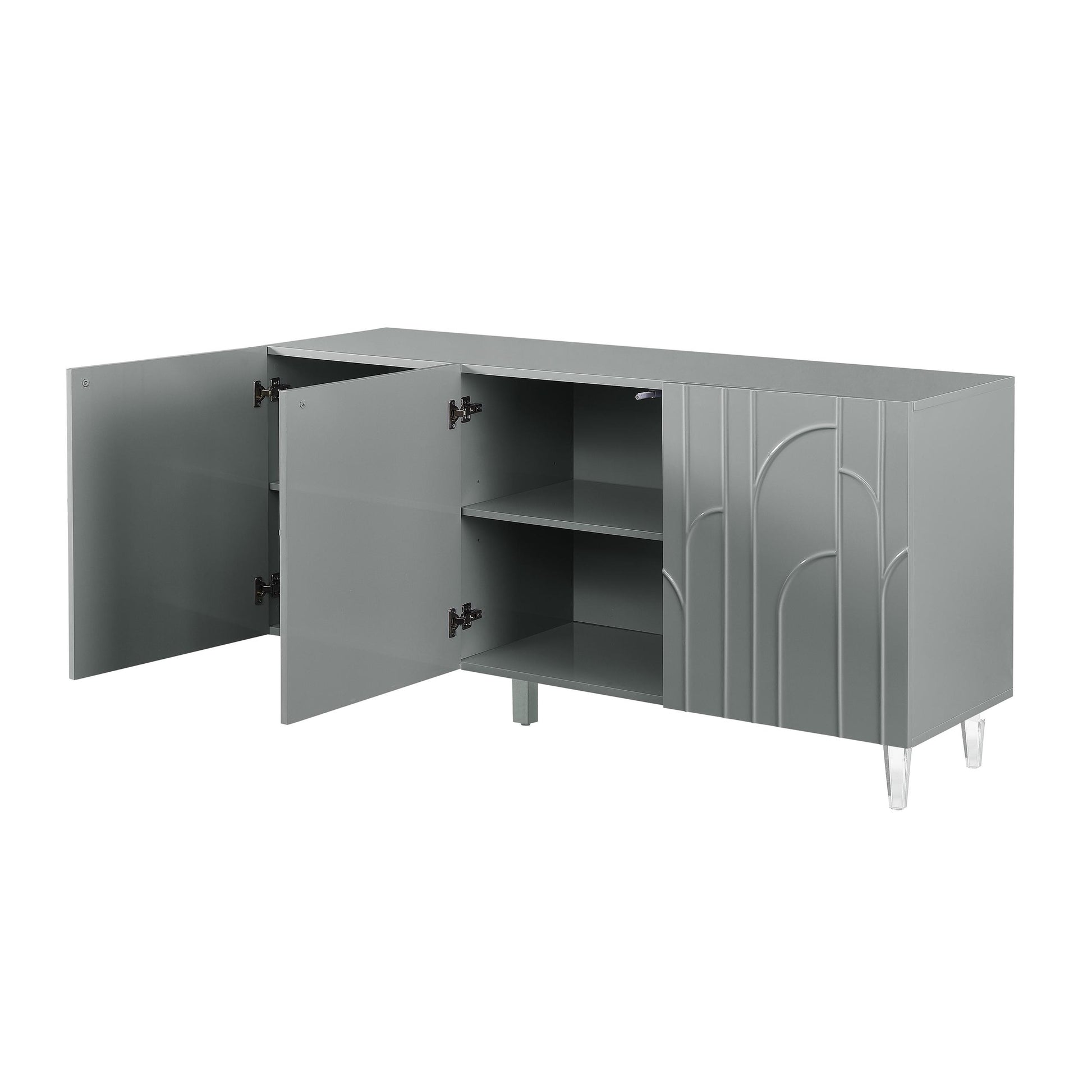 Get a showpiece and storage space all for the price of one with the Deco buffet. Inspired by Hollywood glam design, it features a lacquer finish with an artistic trim and is beautifully supported by sophisticated acrylic legs. Its press-to-open doors, adjustable shelves and abundant storage space make for a stylish and functional piece.