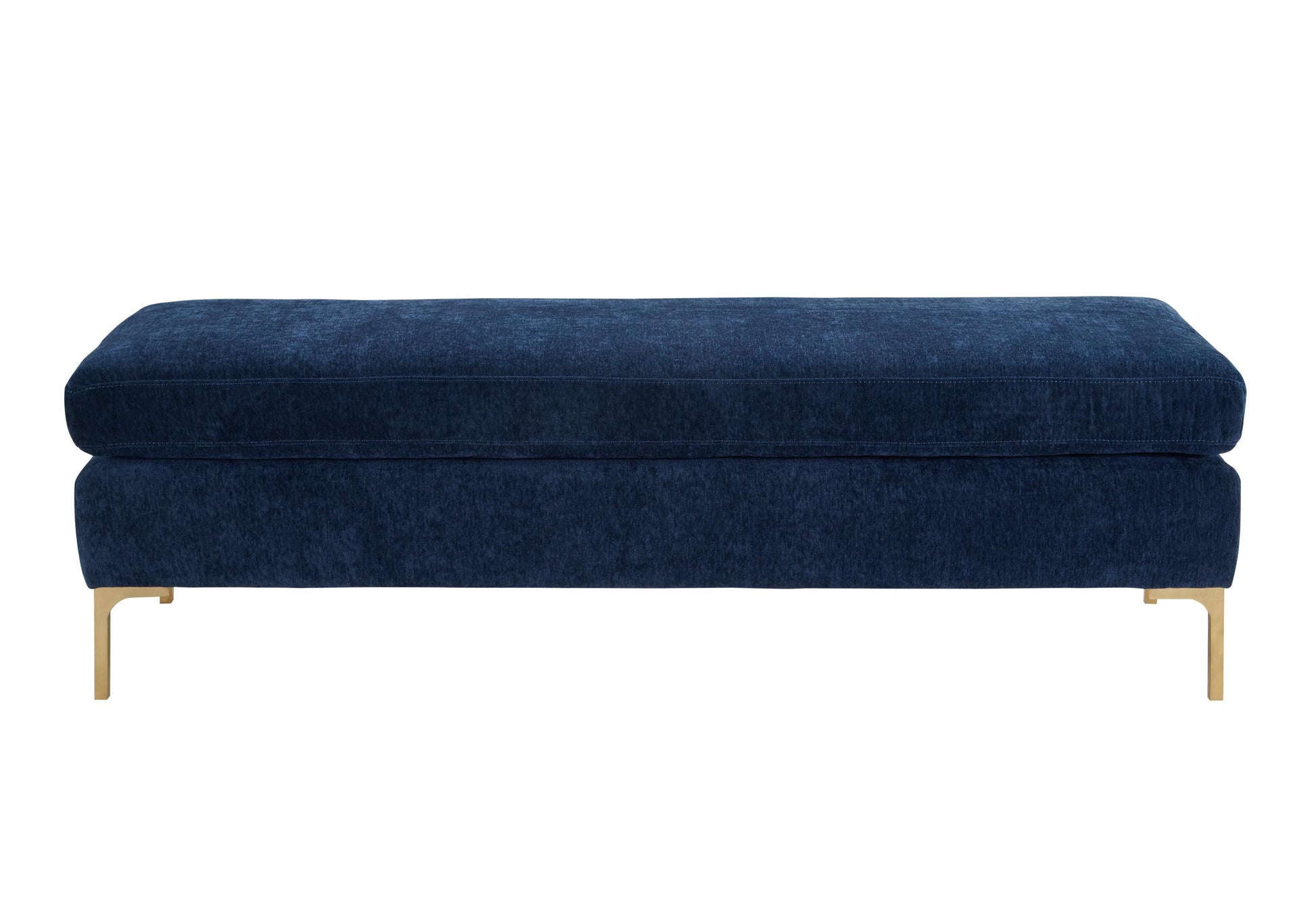 The dramatic Delilah is quickly becoming a new fave. Inspired by modern design, the Delilah is clean and cultured with gold glamorous legs that pop against the textured navy velvet upholstery. Available in full, queen and king sizes. Finish off the look with the matching Delilah bench and take the guess-work out of decorating!