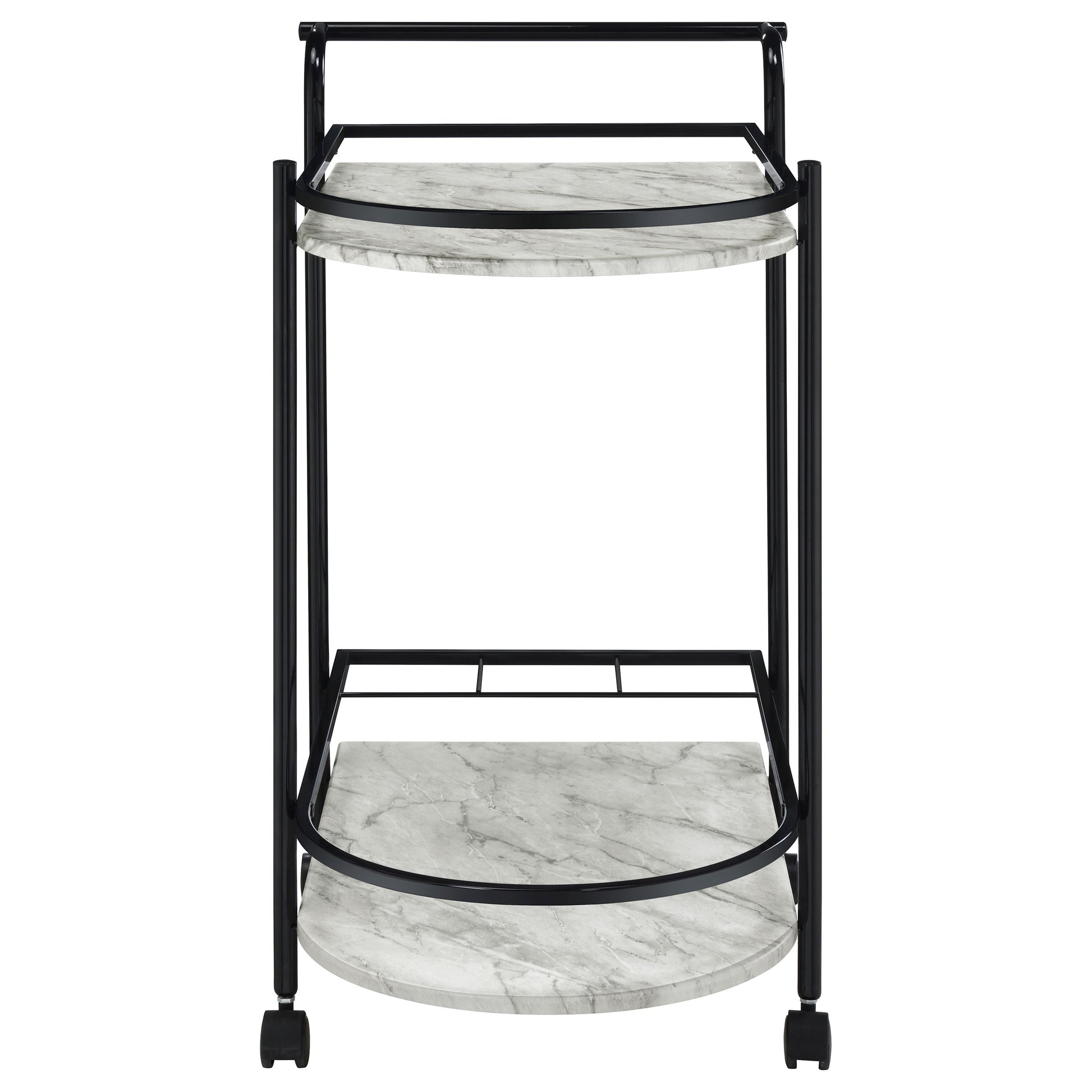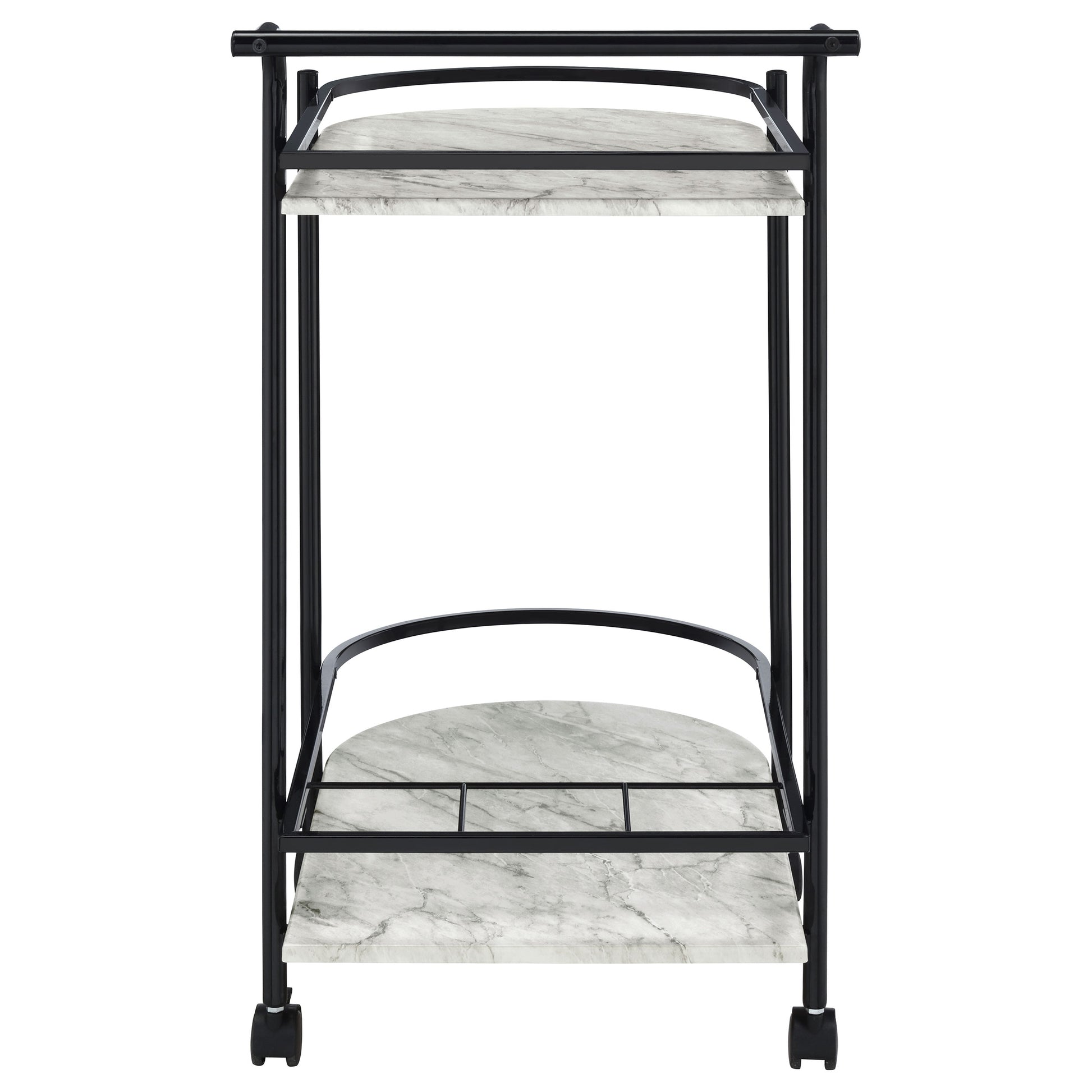 Desiree 2-tier Faux Marble Shelf Metal Bar Cart Black