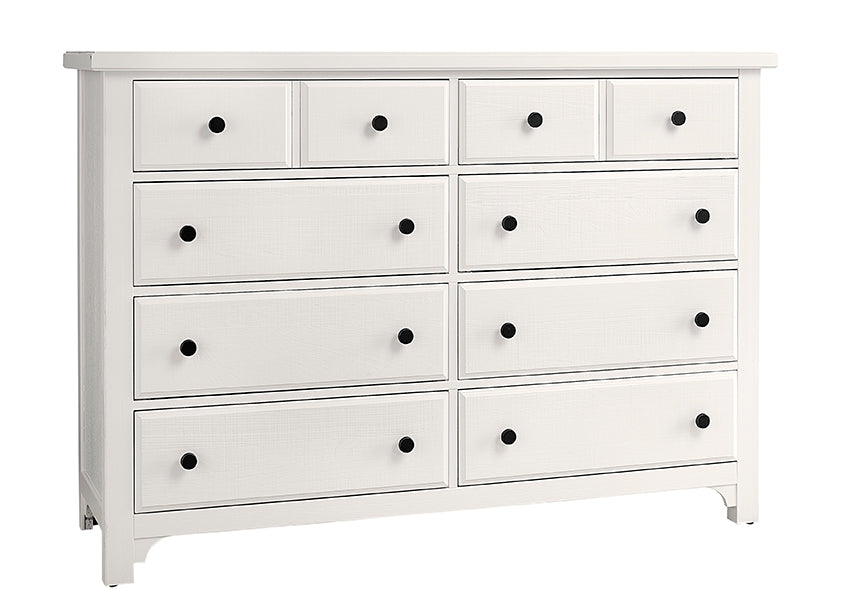 8 drawer dresser crafted of North American maple solids and veneers. Featuring clean lines and natural finishes with custom burnished pewter coin-edged pulls.