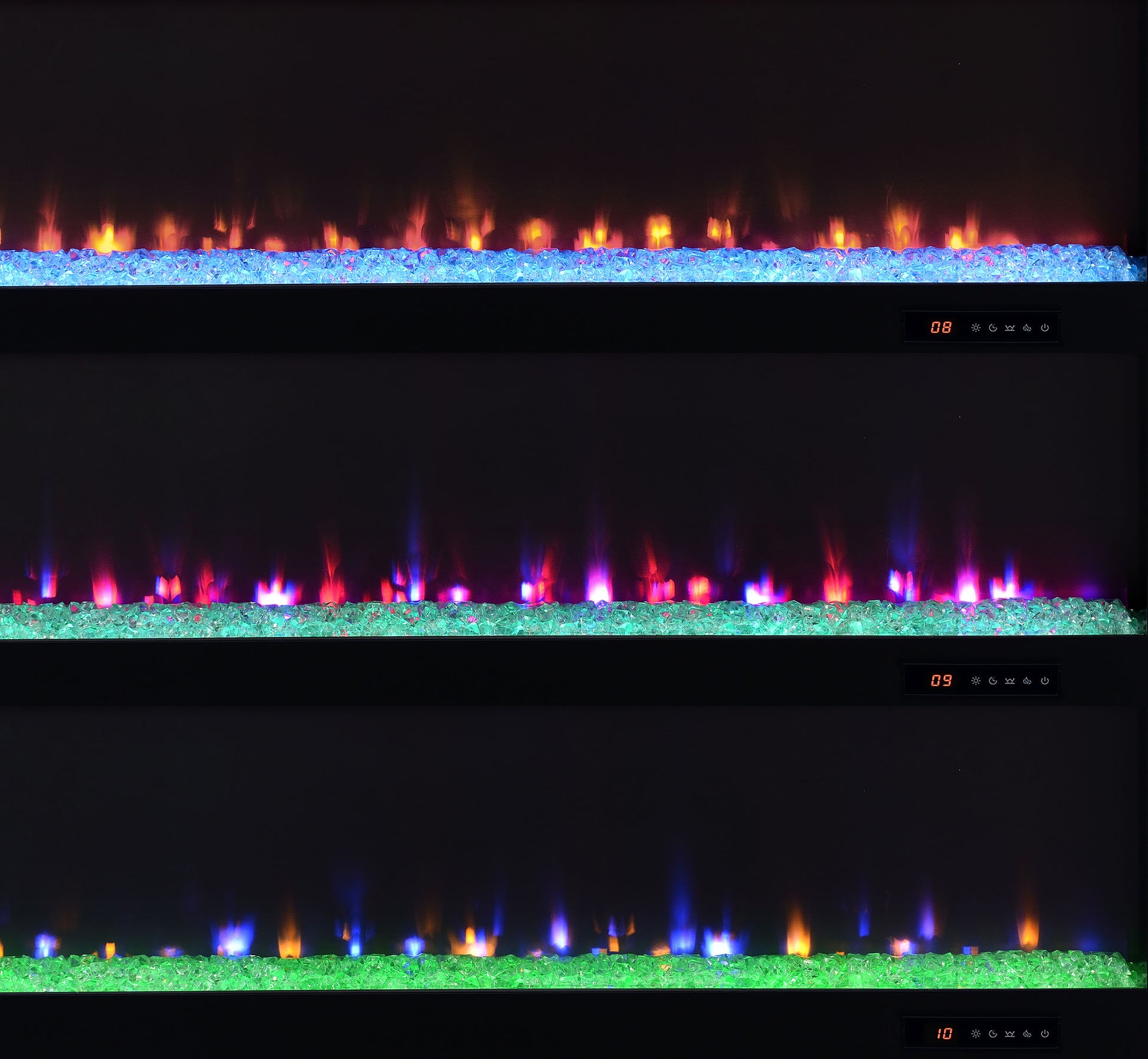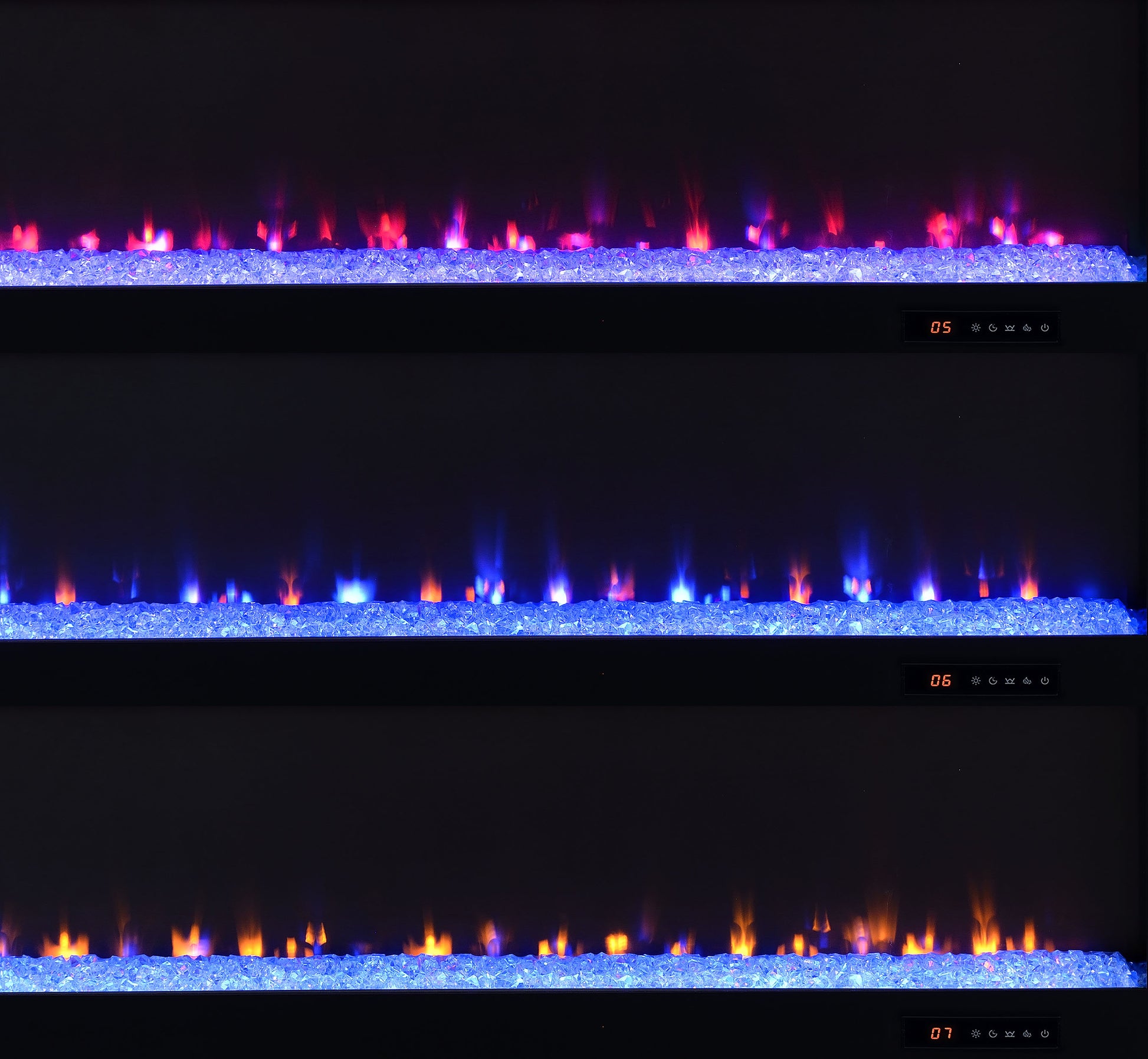 • TV stand flame visualizer console with crushed acrylic crystals and fifteen flame color options