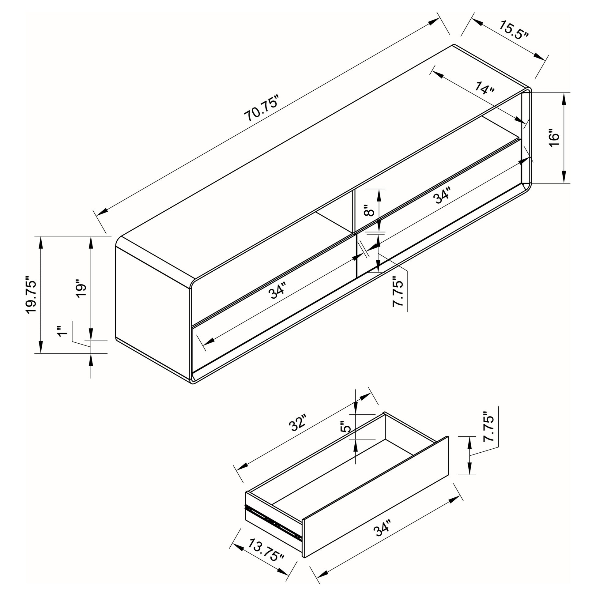 • Two roomy drawers offer concealed storage for media items
