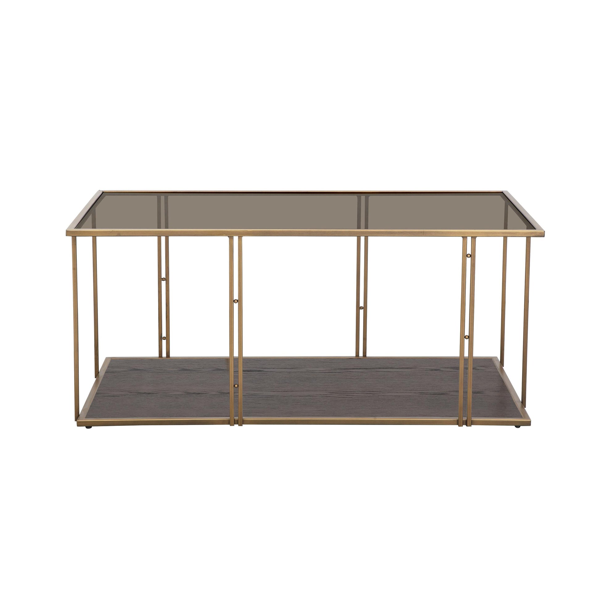 New from our Inspire Me! Home Decor x TOV collection, the Emma Tables are immediate fan-faves. These transitional style coffee and side tables dazzle with smokey glass and trending warm wood tones. Our signature brass iron base lends that element of EXTRA.