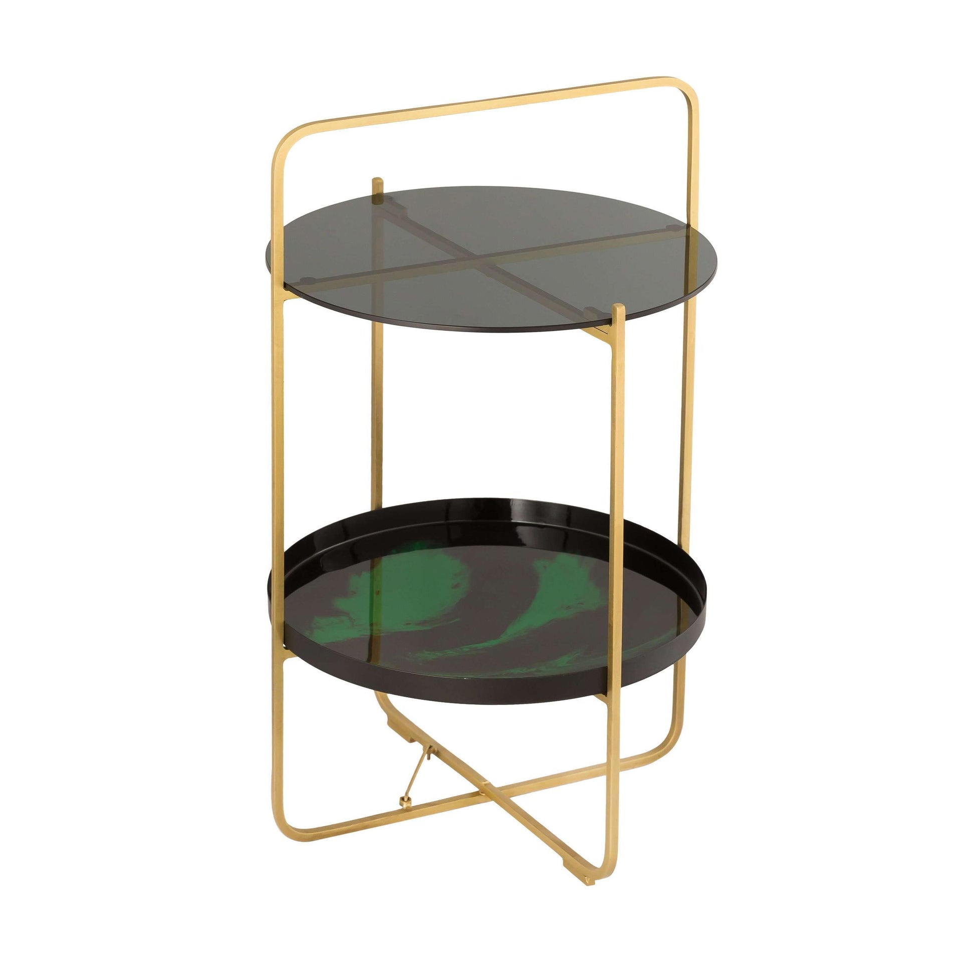 Crafted from gold-finished iron and flaunting a unique enamel tray and glass top, this side table is offered in two color options to match your fabulous style.