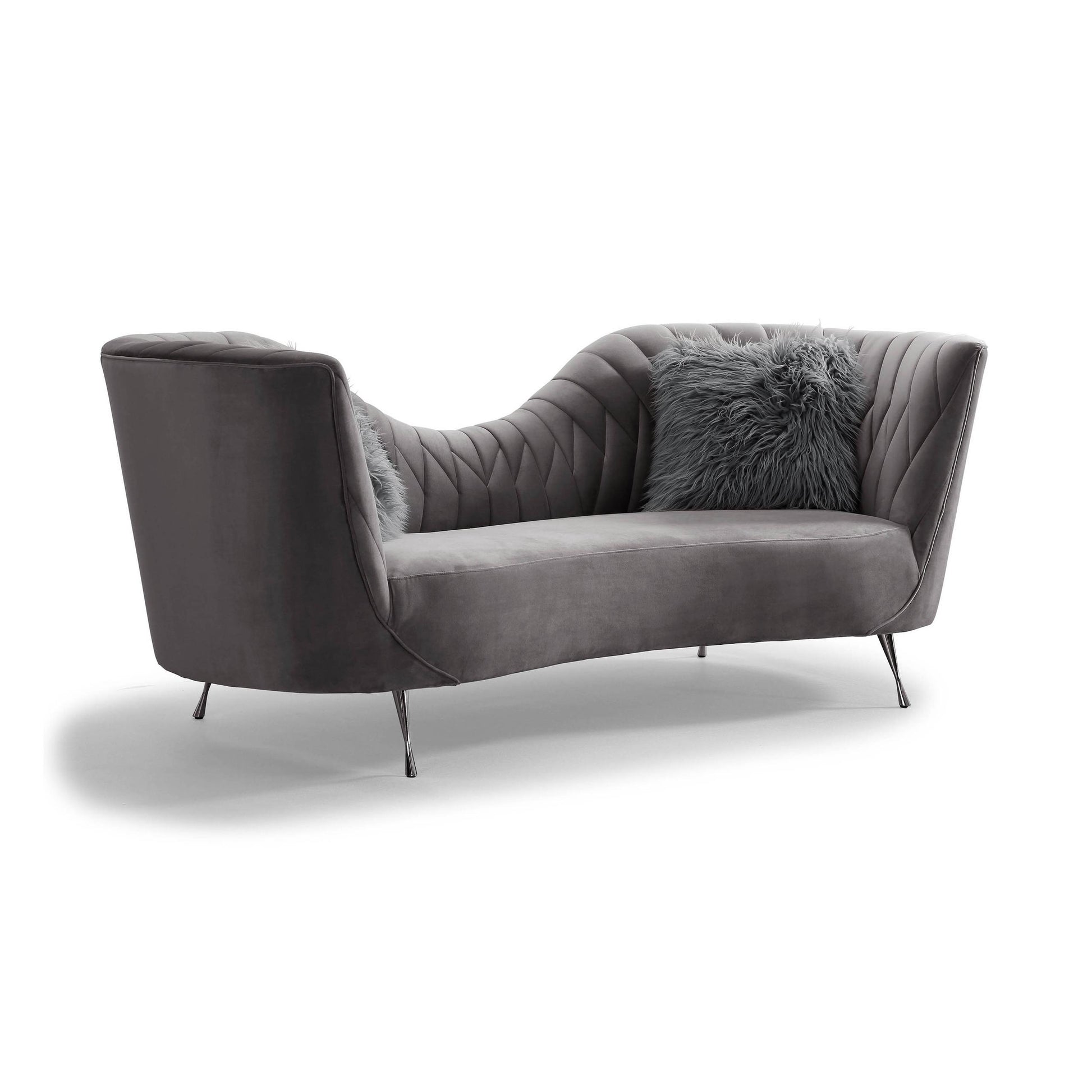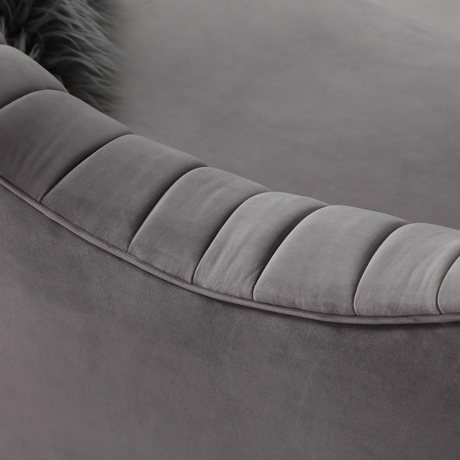 Hollywood glam takes on a whole new meaning when the Eva collection makes its way into your home. We went all out on these statement pieces with intricate details, sloping silhouettes, with soft and sumptuous velvet upholstery. Each sofa includes matching faux sheepskin pillows and is available in multiple colors with matching accent chairs available.