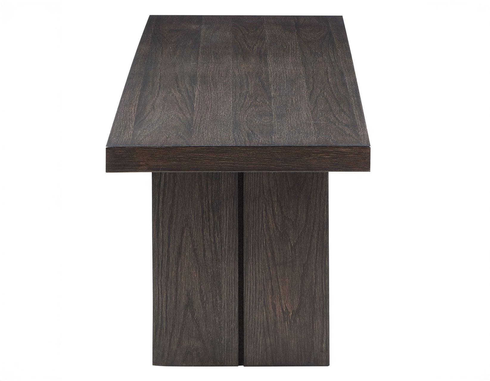 The Evan 68″ Wooden Bench offers practical and flexible seating for dining rooms, hallways, or office spaces. Crafted from oak and mango veneers with a warm walnut finish, the bench is wire-brushed and treated with a waxy hang-up, adding depth and beauty to the wood grain. The double pedestal base provides a modern touch while offering sturdy support. With room to comfortably seat up to three people, this bench is both stylish and functional, making it a versatile addition to any space.