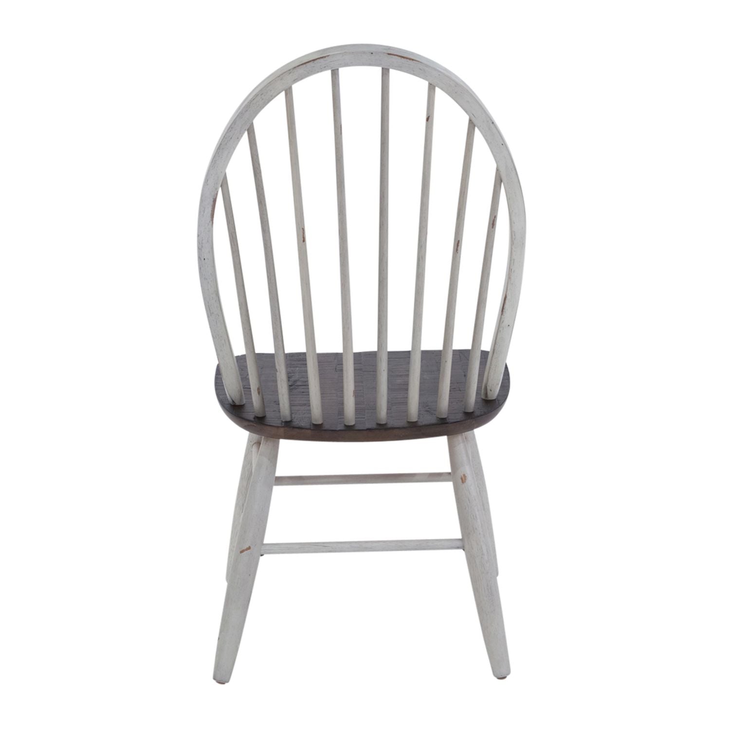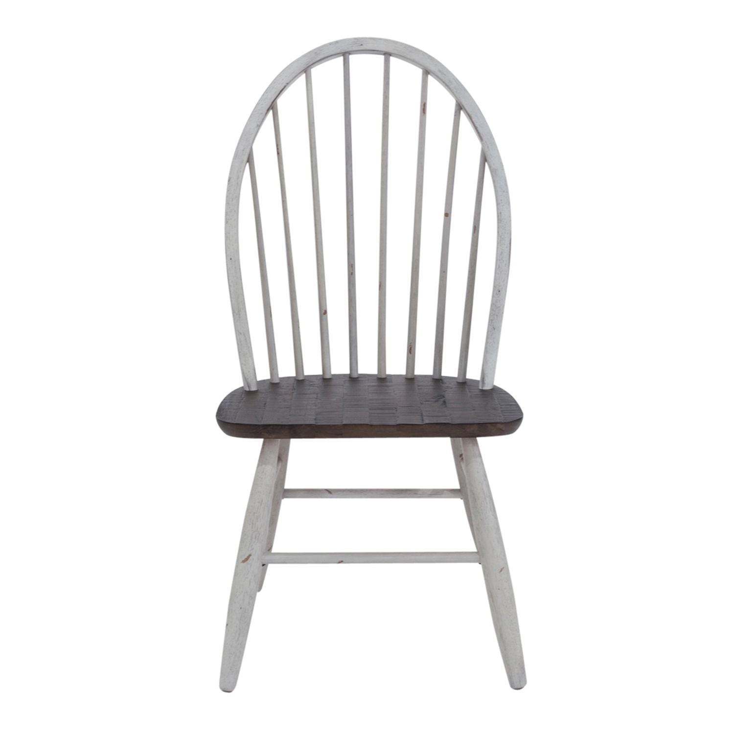 Sit in style and comfort with the Farmhouse Windsor back side chair. Crafted of rubberwood solids, this piece features a timeless heavy distressing and nylon chair glides to protect your flooring. The two-tone white finish with wood tone seat creates a versatile look that is sure to be the perfect addition to any space.
