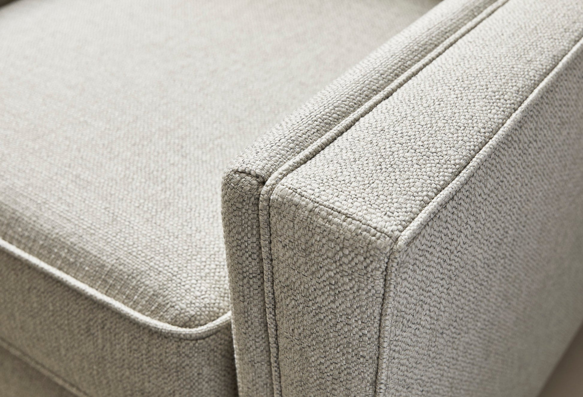 Tailored Elegance Simplicity and elegance combine in a sophisticated silhouette with the Finley chair. Featuring a distinctive profile with sloped, tapered track arms and attractive welt detailing, this stationary design is an elegant statement for any home. The semi-attached back and removable, reversible seat cushion make it easy to clean and maintain your chair. This stately frame sits on sleek, square-tapered legs and is available in hundreds of fabric options to suit your style. Sloped arms with welt trim for an elegant touch Square-tapered legs, available in three finish options Includes an accent pillow in your choice of fabric to match your personal style Built to last with Flexsteel’s Blue Steel Spring™ seat system providing unmatched support and durability Sustainably sourced, kiln-dried wood frame with mortise and tenon joinery for lasting strength High-resiliency foam core seat cushion, engineered to maintain its shape over time, complete with a layer of recovery foam for everlasting quality and luxurious comfort Semi-attached back cushion for a neat appearance Removable and reversible seat cushion you can flip and rotate for even wear Upholstered in the expertly tailored fabric of your choice, including high-performance and sustainable options Handcrafted in North America Model Number: 5010-10 Dimensions 38H x 33W x 38L