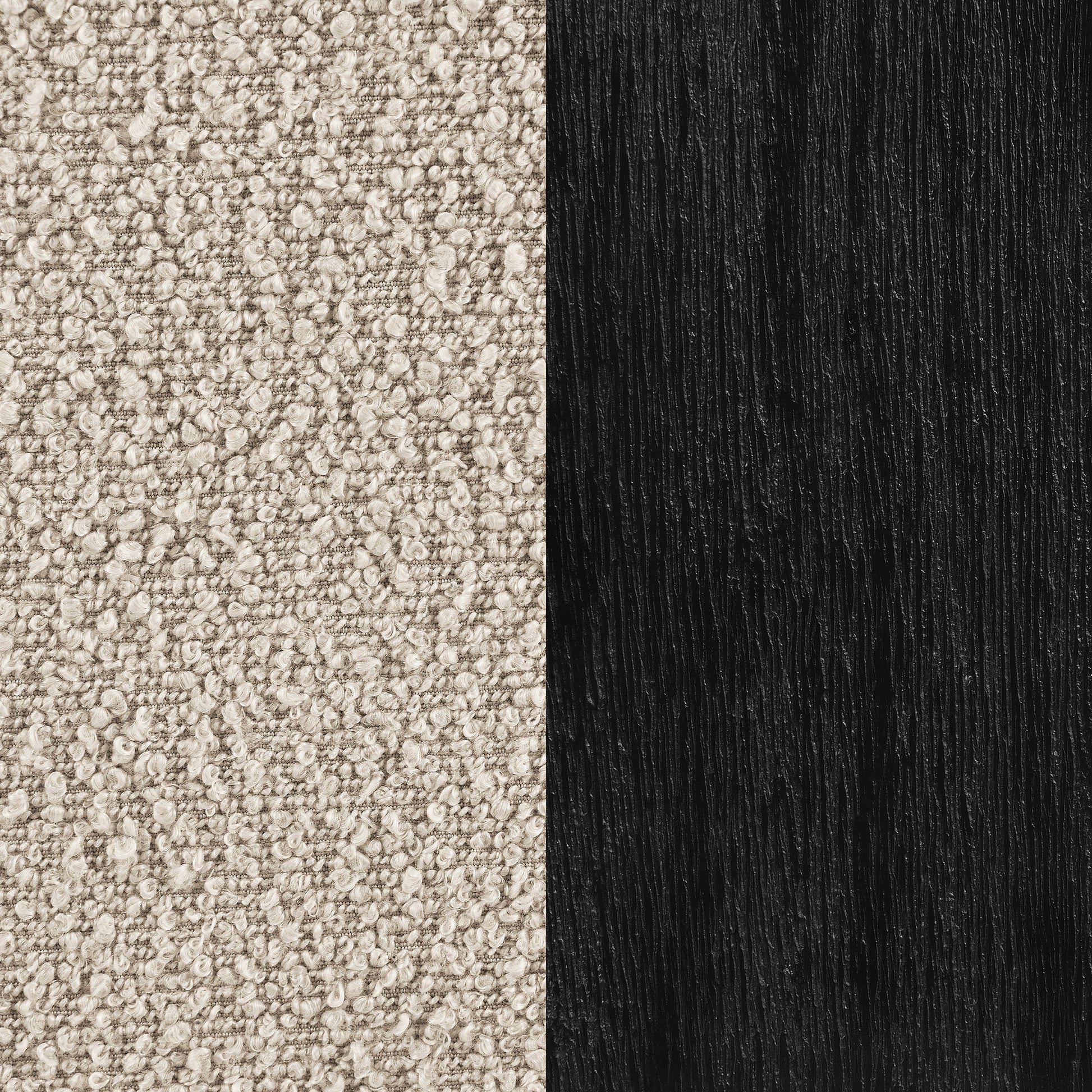 • Neutral boucle upholstery creates exceptional texture and on-trend dimensionality in a sitting area