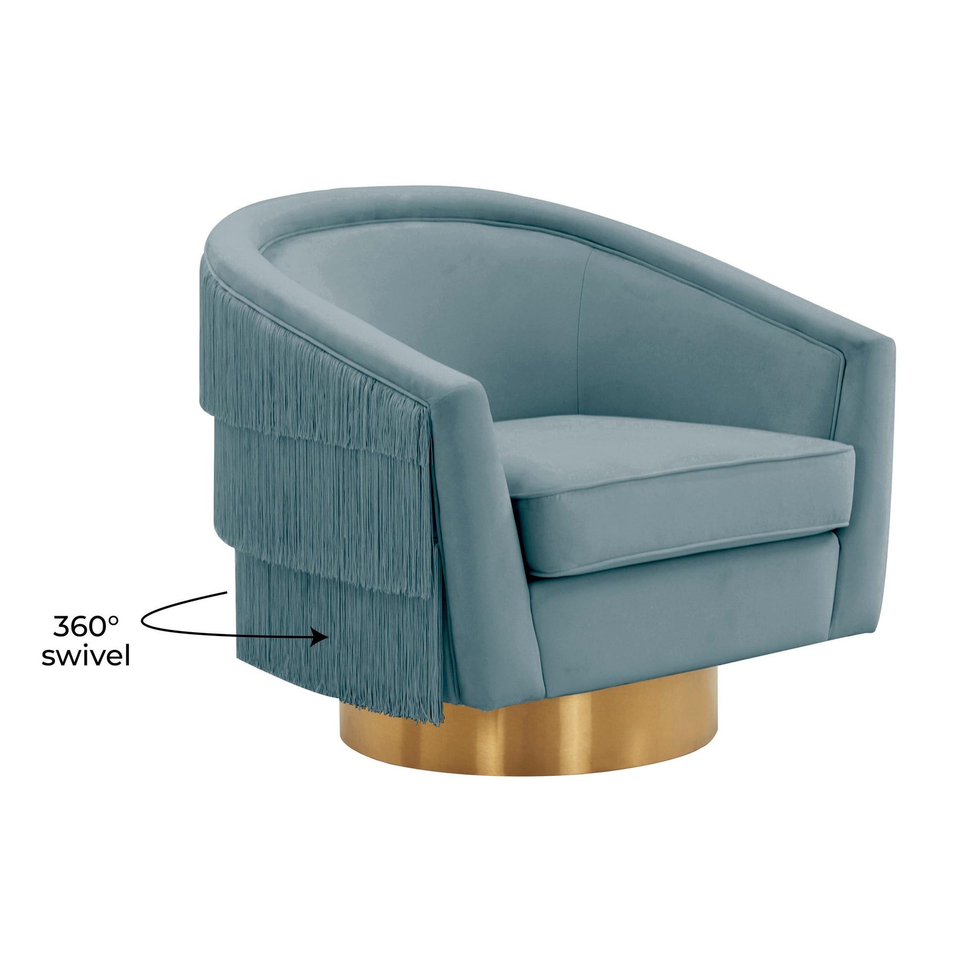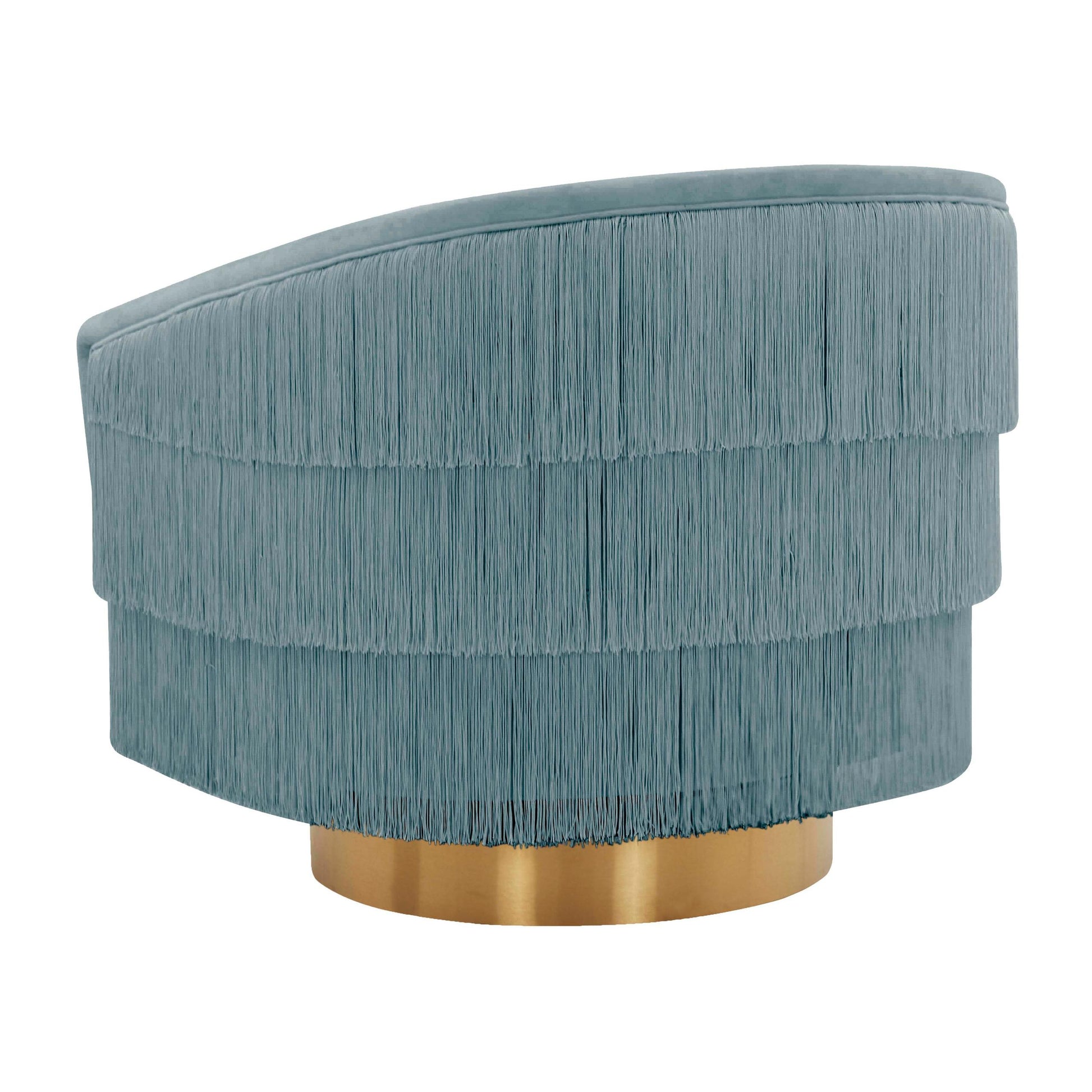 Get ready to sink into a world of comfort and push the limit of fab design. Upholstered in sumptuous velvet with piped stitching and tassels galore, the look is completed with its brushed gold base. Available in several colors, the Flapper chair is the perfect piece to enhance any space.