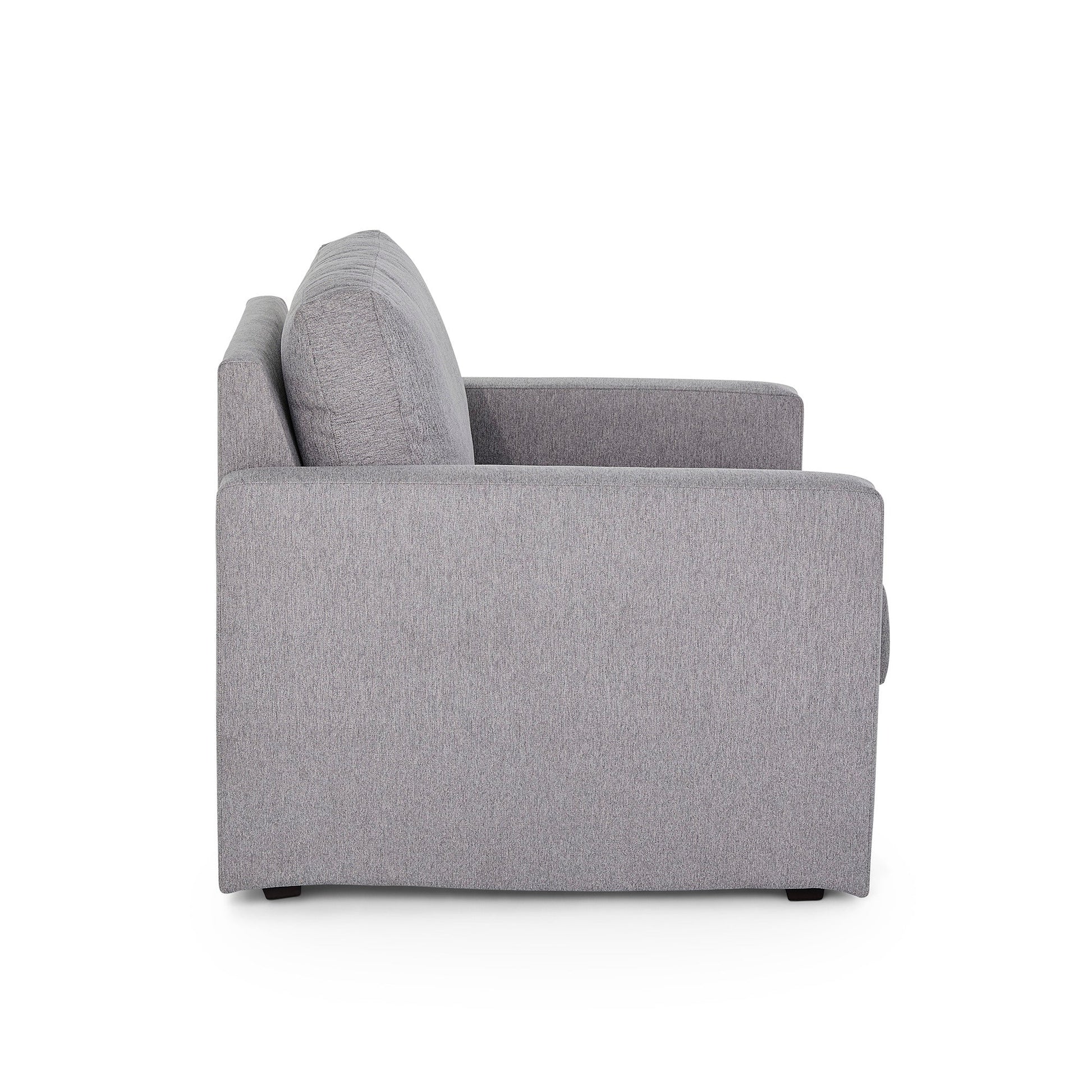 Upholstered in a gray performance fabric that is sustainably made with recycled water bottles and delivers exceptional stain- and water-resistance for easy cleanability, making it the perfect choice for active families and pets