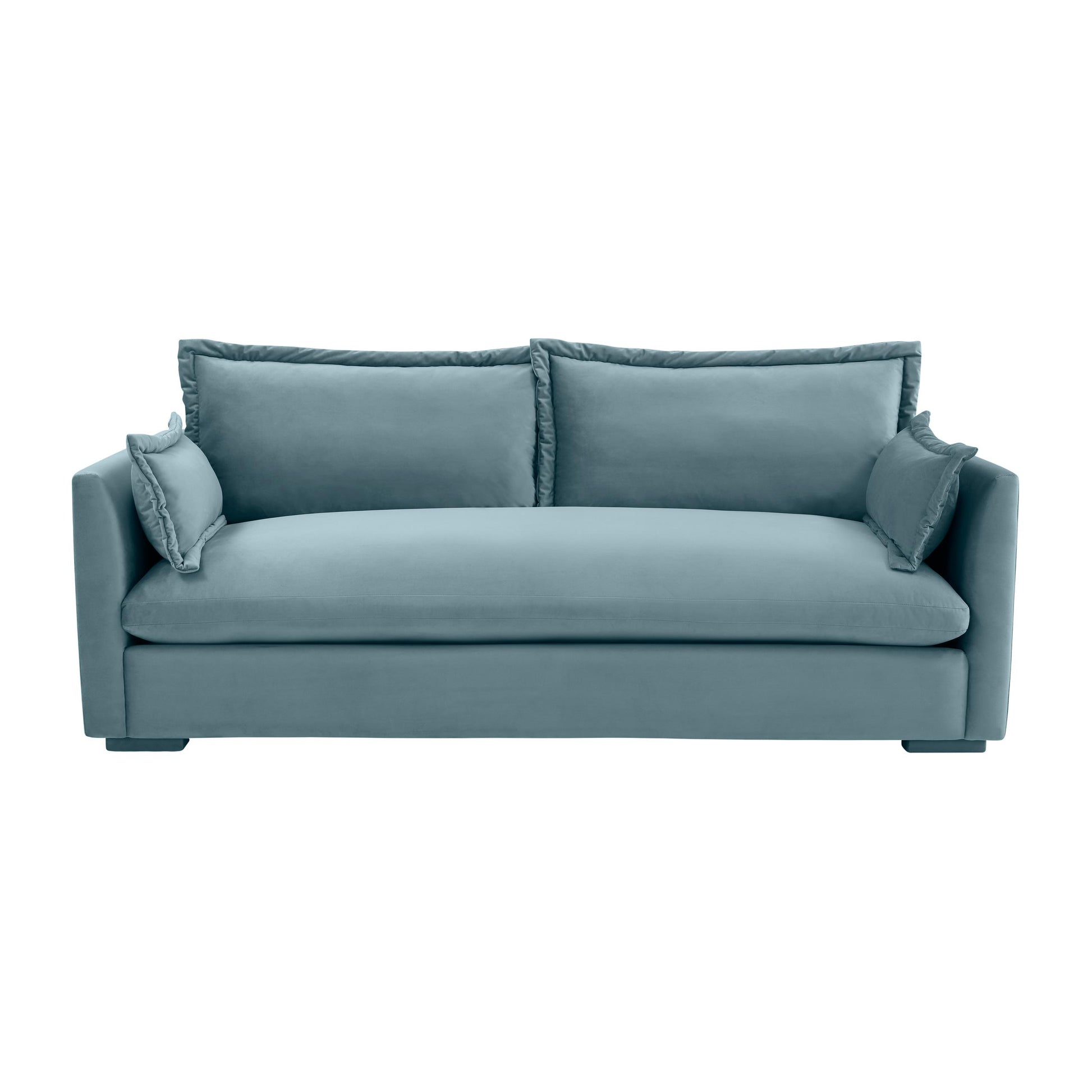 Introducing Freya, the goddess of sofas. Boasting a plush velvet upholstery, down-filled removable cushions, and a sturdy kiln-dried wooden frame, this deep-seated sofa epitomizes comfort and durability. Available in several colors to complement your fabulous taste.