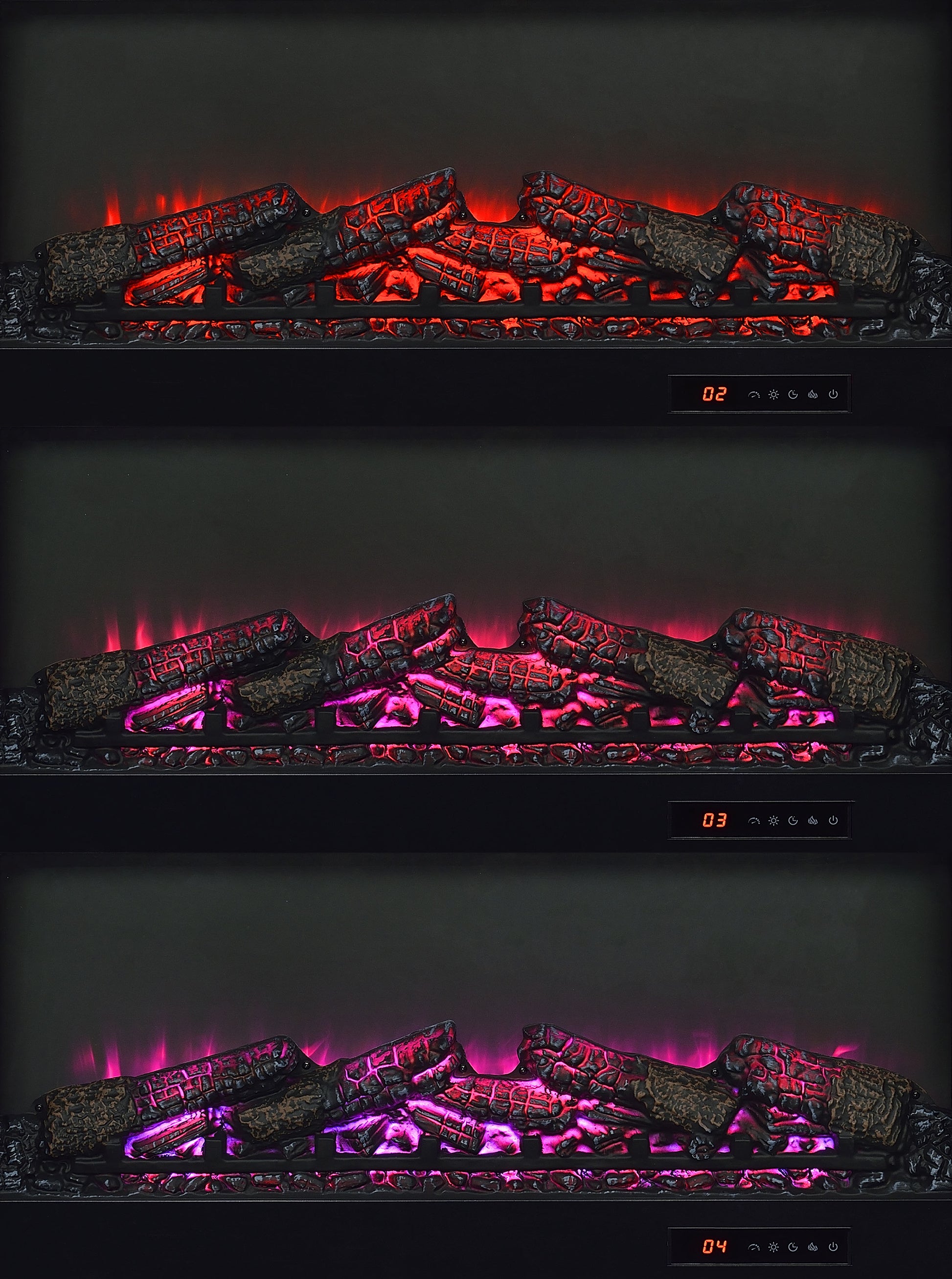 • TV stand fireplace console with electric flame visualizer and center cubby for media components