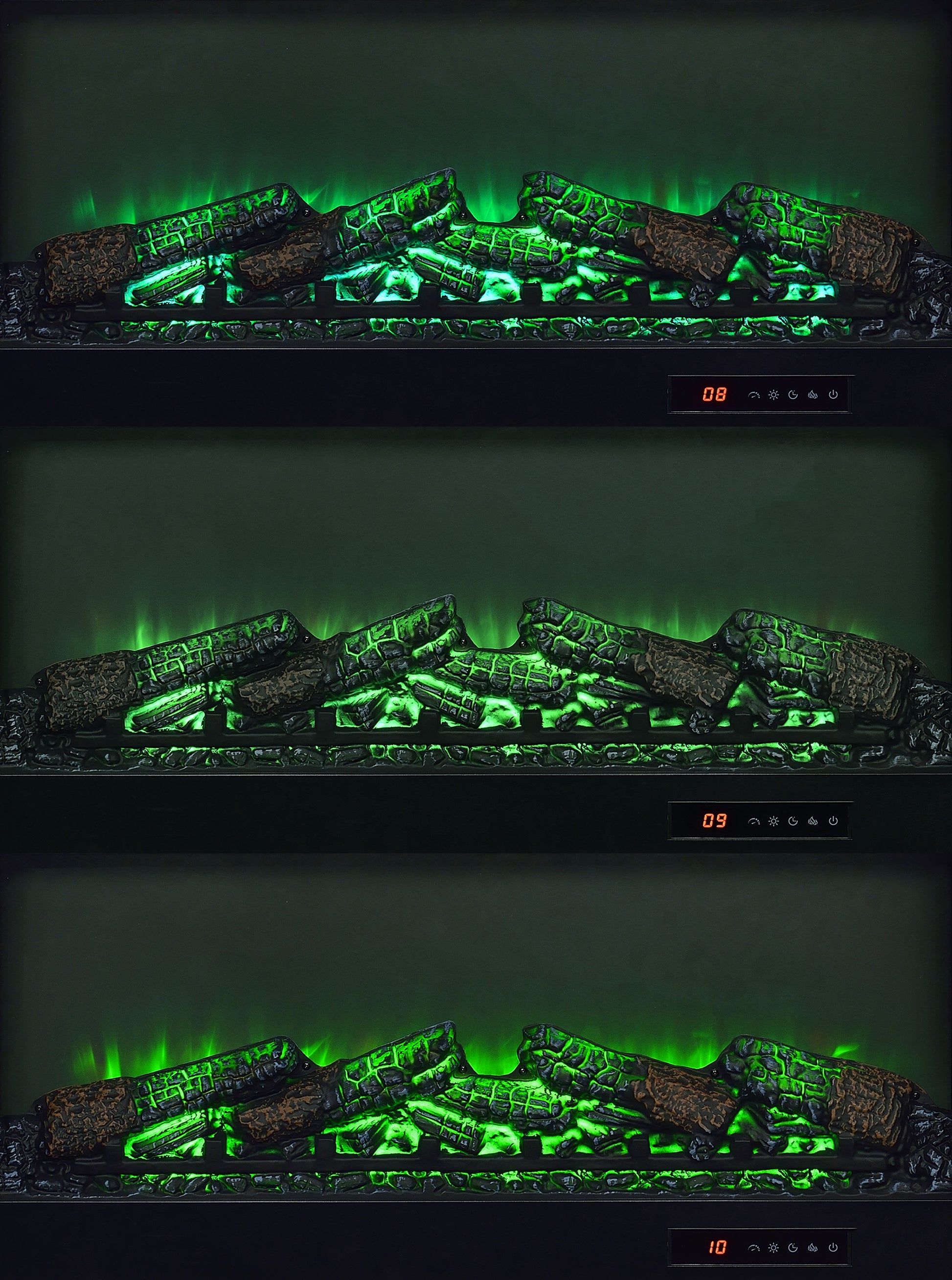 • Accommodates TVs up to sixty-five inches and includes a wireless remote for the firebox
