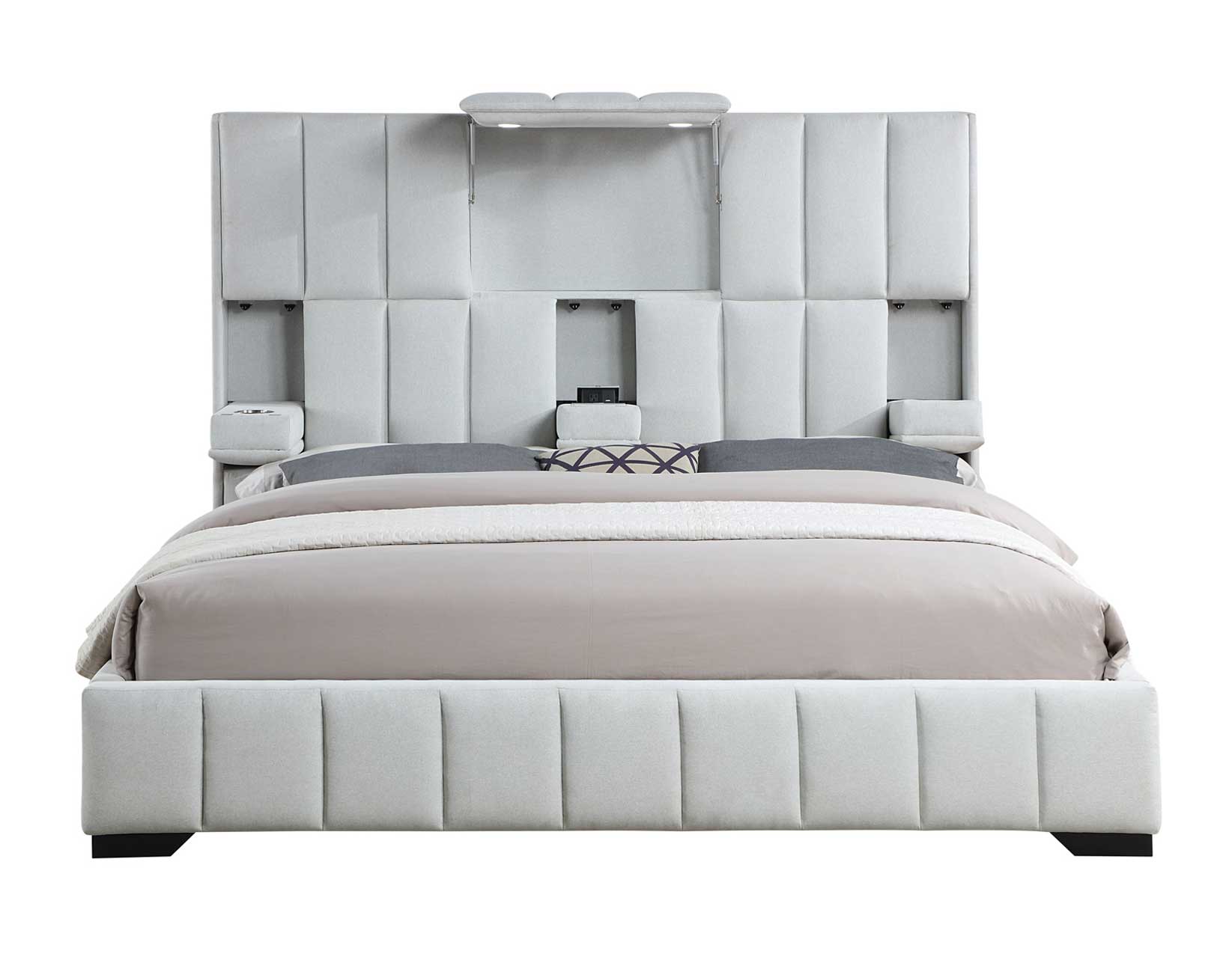 Sharlance Queen Upholstered Panel Bed with Mirrored Dresser
