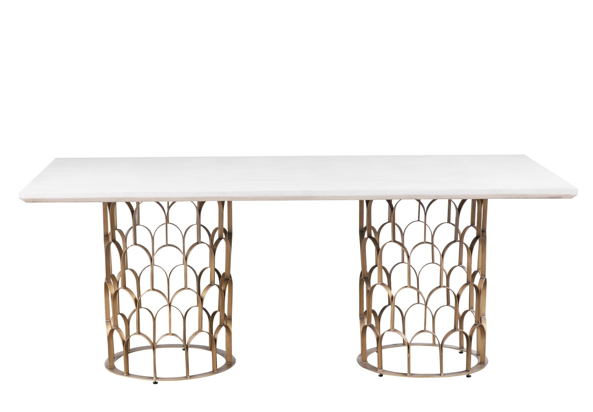 Inspired by luxe Hollywood glam, and born to make a statement, the Gatsby collection from TOV is sure to add a sensational touch to your dining area. Supported with a beautiful brass steel base the table top is available in black Acacia wood or white concrete.
