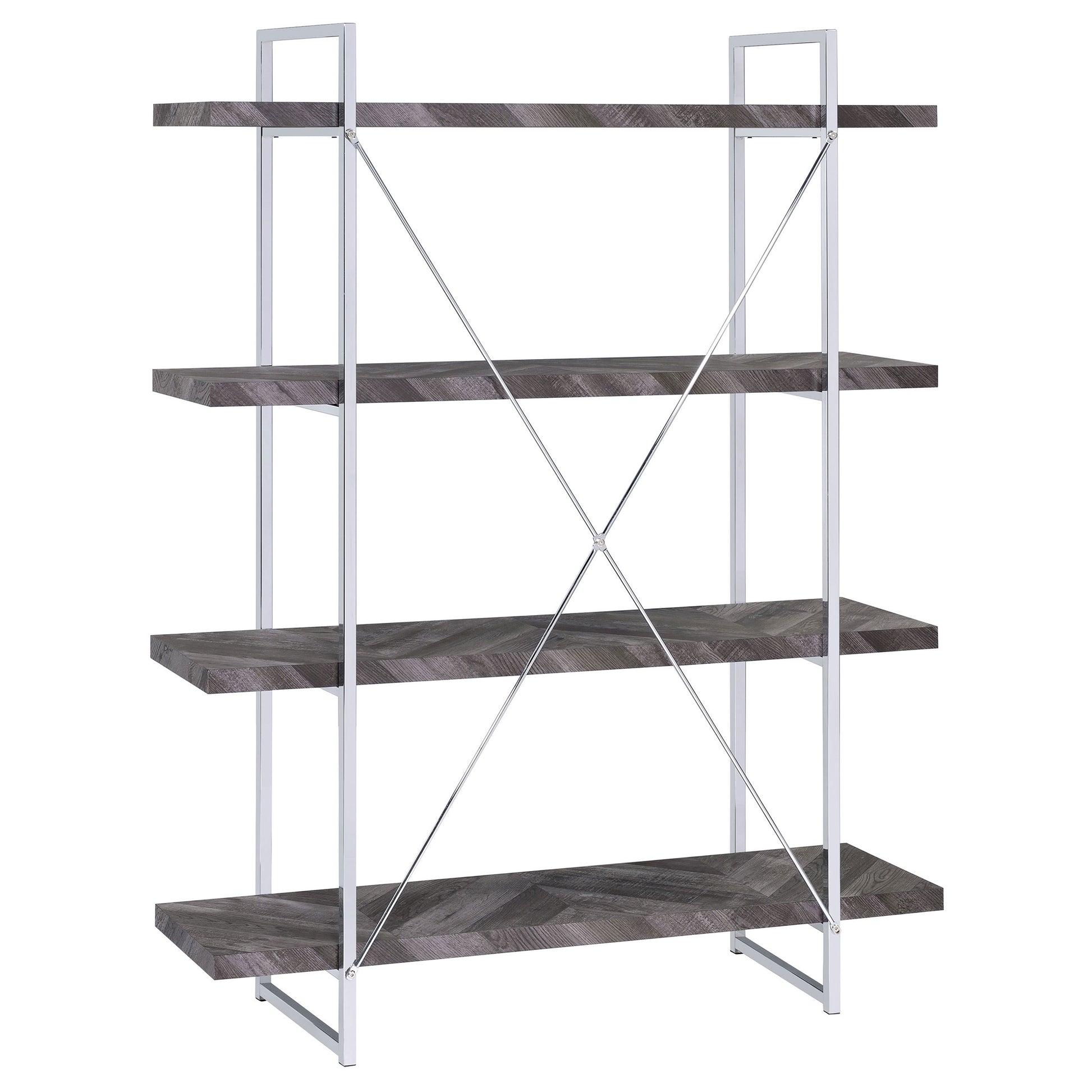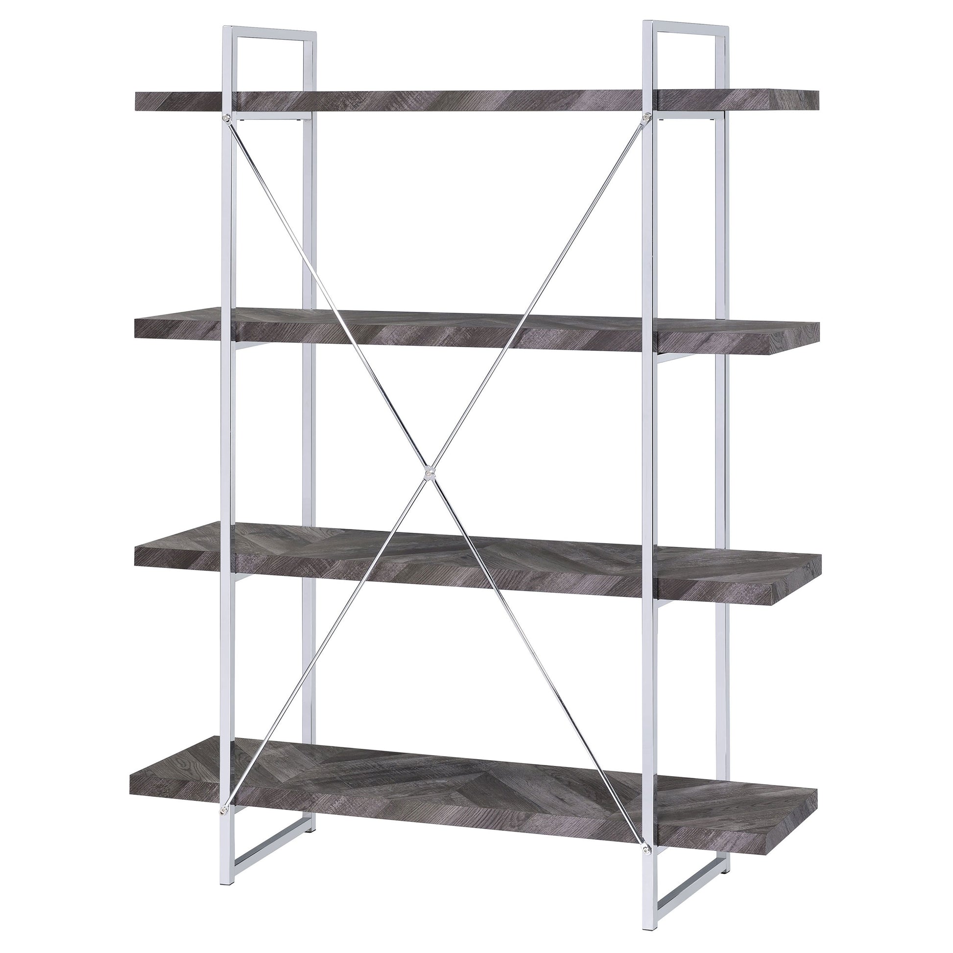 Grimma 63-inch 4-shelf Bookshelf Rustic Grey and Chrome