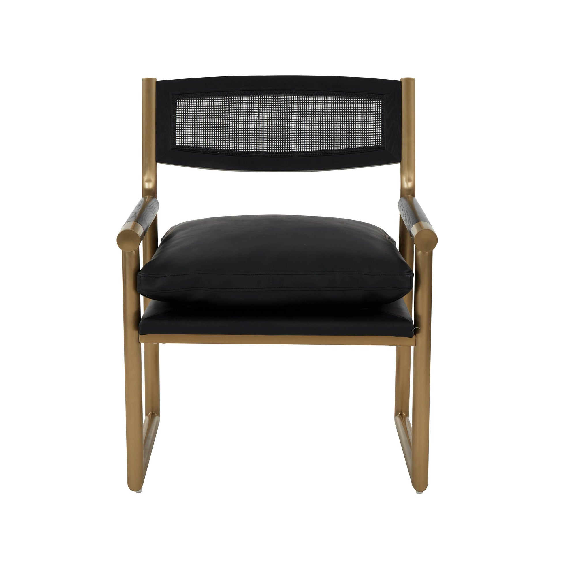 The Harlow chair has a classic mid-century design with a stylish twist. This piece boasts clean lines and warm wooden tones, paired with soft vegan leather upholstery. Featuring rattan details and a gold stainless steel frame, the versatile Harlow will make the perfect head chair at any dining table or be used as an accent chair in your living room!