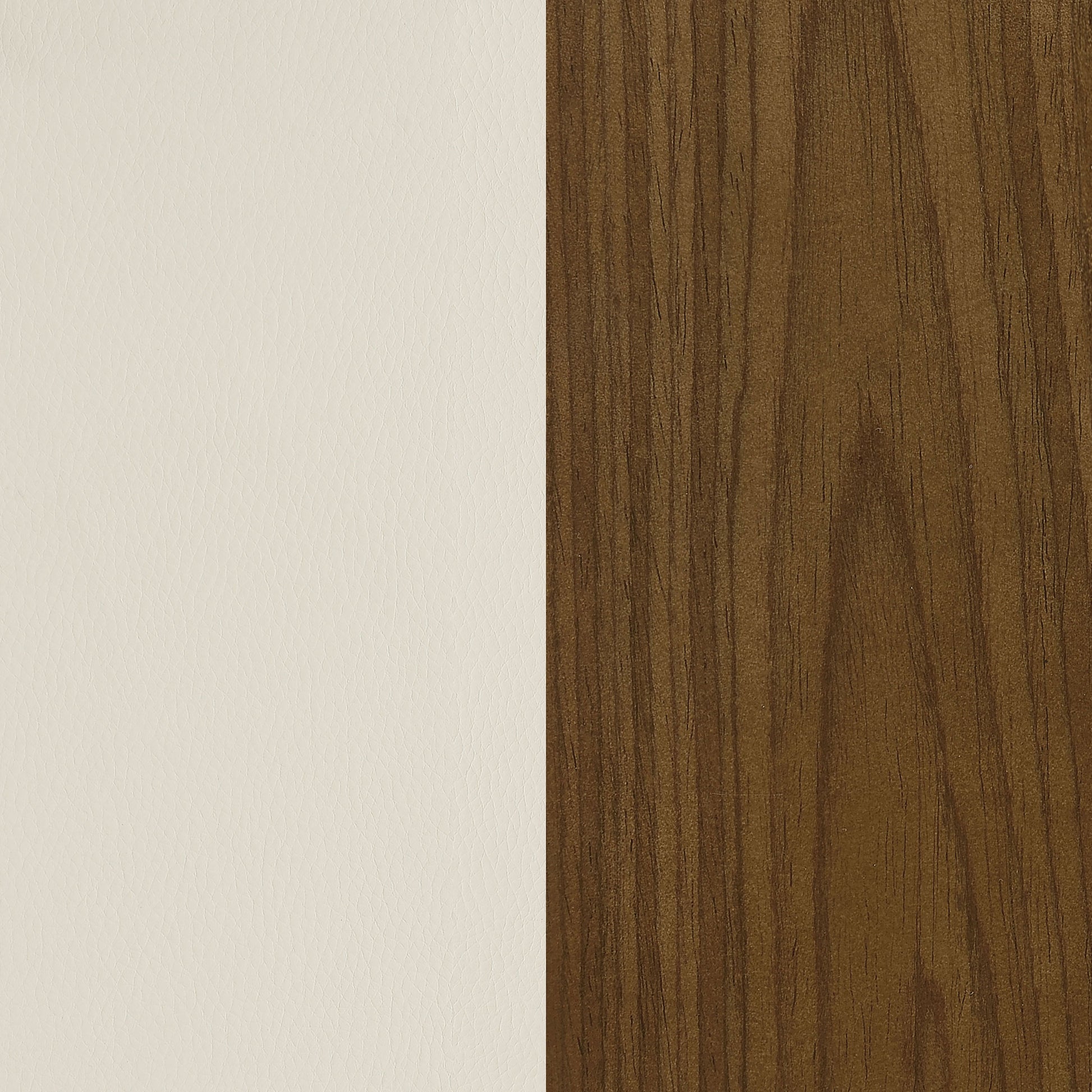 • Upholstered in a soft, ecru leatherette and accented by natural tones of walnut, it blends effortlessly with most any style of decor