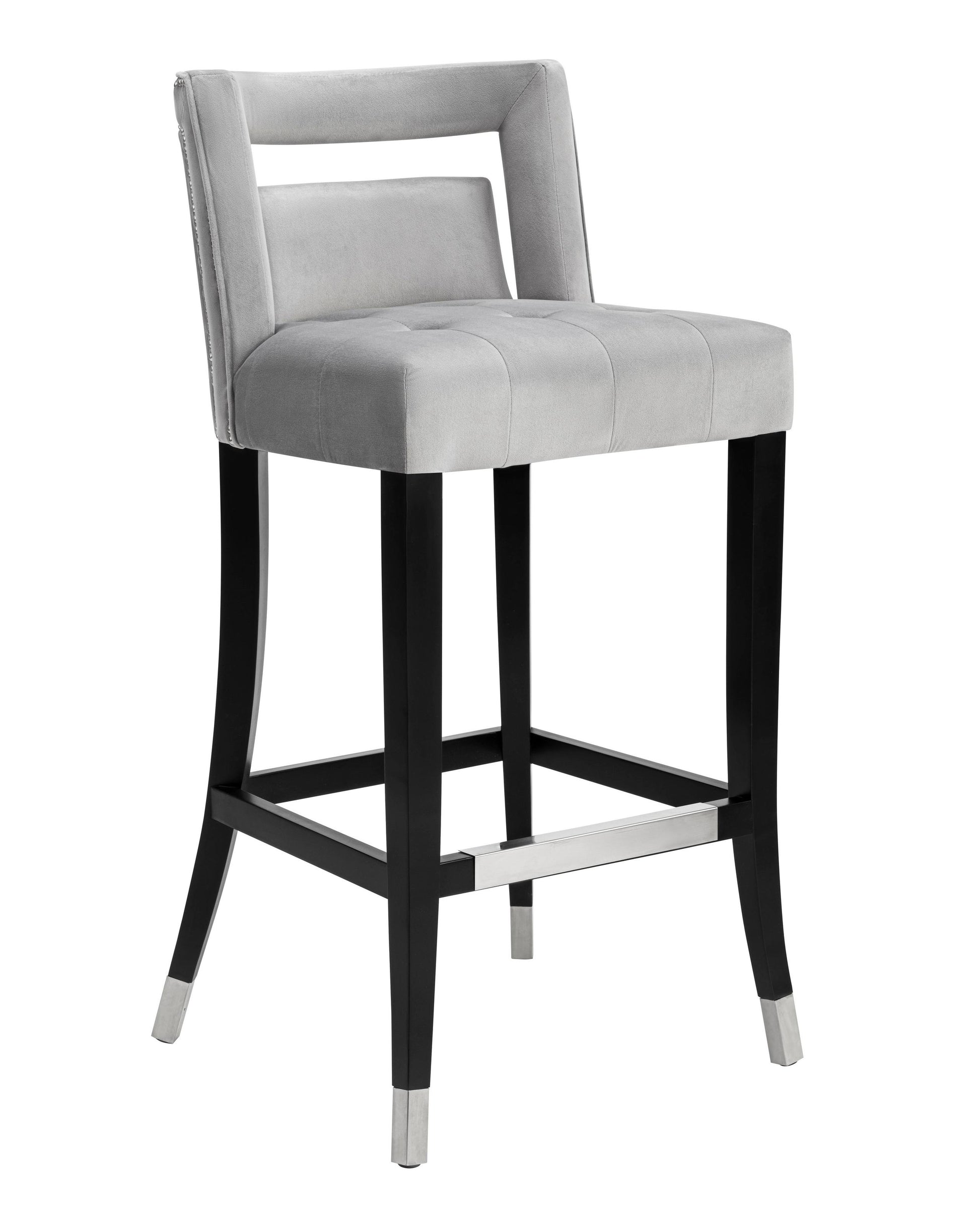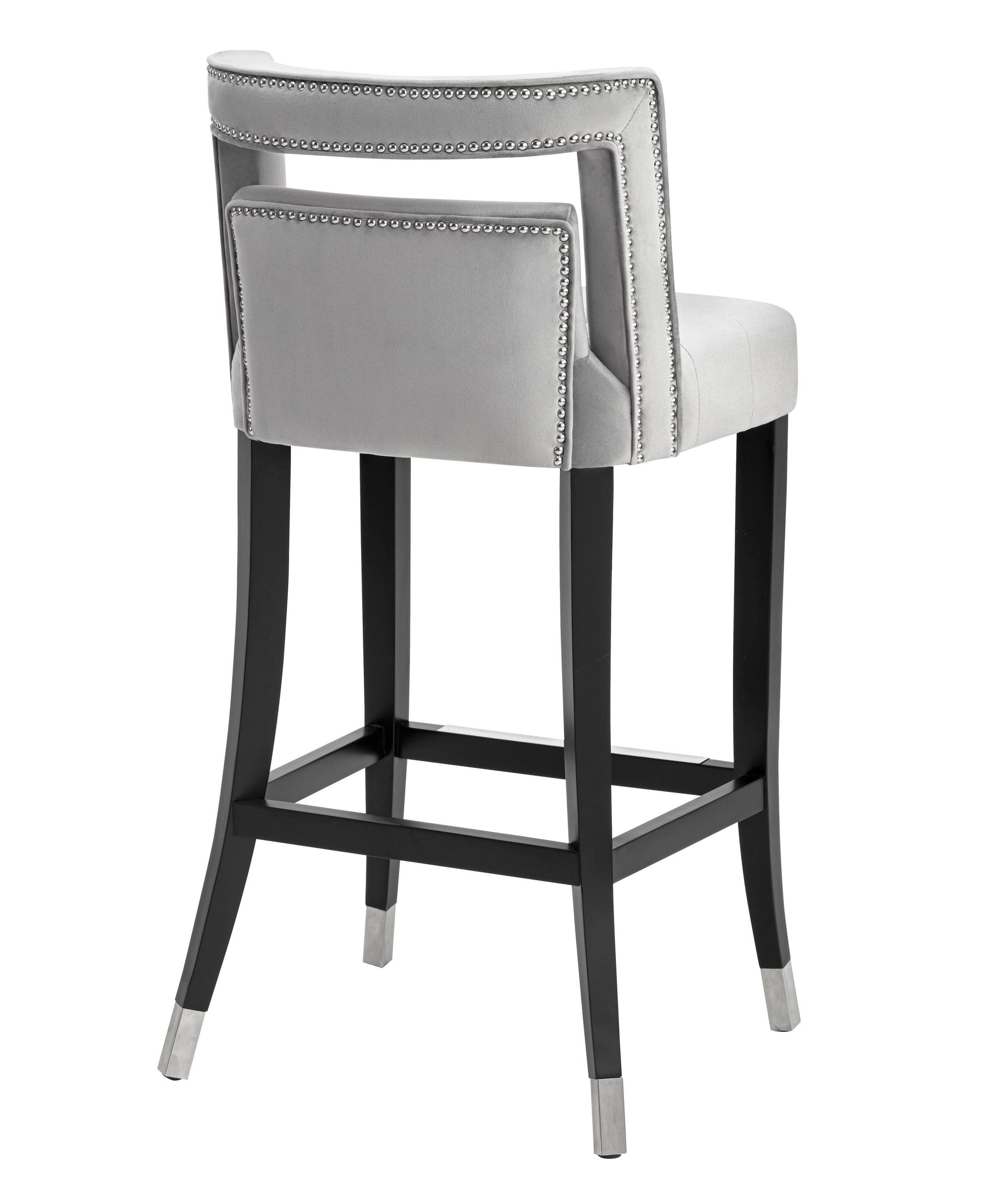 Not for the faint of heart, these stools will make you swoon. Making their debut with a bold statement, the Hart stool is available in bar and counter height options, its sumptuous velvet upholstery in multiple color options. Hand-applied nailheads and metal tipped legs match the accompanying footrest.