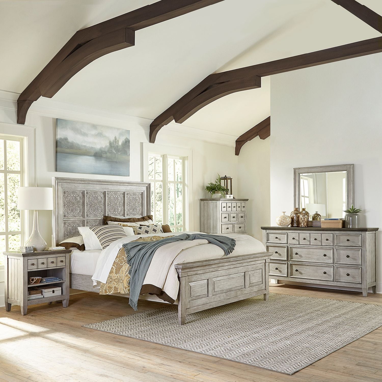 Heartland - King Opt California Panel Bed, Dresser & Mirror, Chest, Night Stand