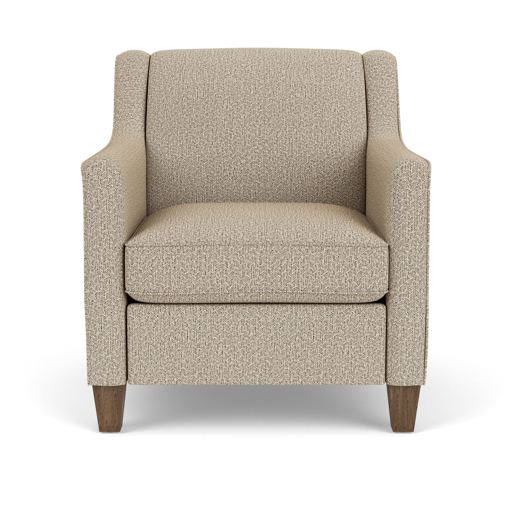 Welt cording displayed on a modern frame Welt cording highlights Holly’s silhouette from the bottom to the top of the outside arm and across the seat cushion. Tall, tapered wooden legs add visual height to Holly’s structure and complement its modern inspiration. Thin, angled arms curve upward for a fun, stylish effect. Careful tailoring of all fabrics reflects matching of all elements except outside back panels and welts. Model Number: 5118-10 Dimensions 37H x 33W x 36L