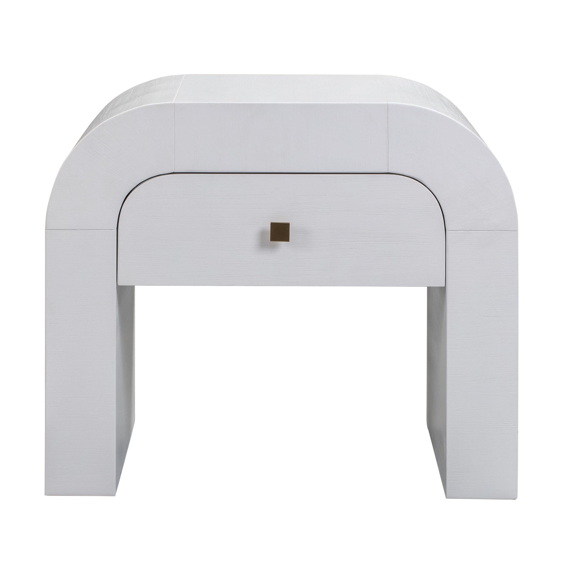 Featuring sturdy, curvaceous silhouettes, the hump collection will make a wonderful addition to your home. Acacia veneers finished in white provide a bright, neutral tone that will go with many decorative settings. The nightstand also features a single drawer accented with a gold knob pull for added effect.