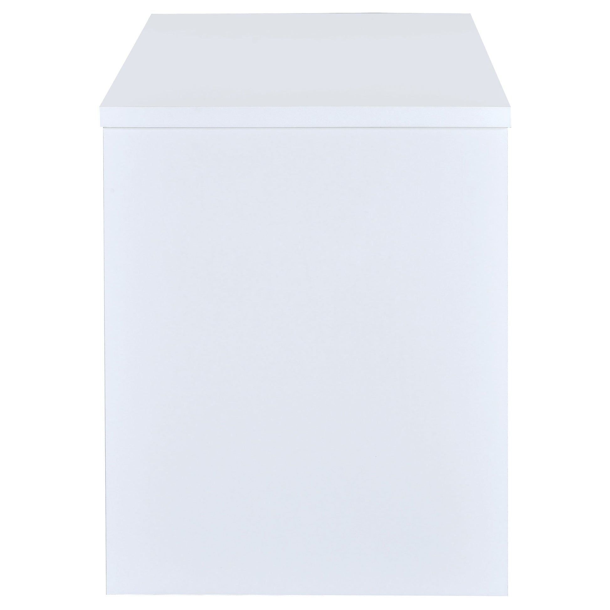 • White finish office desk with contemporary design and sleek compact profile