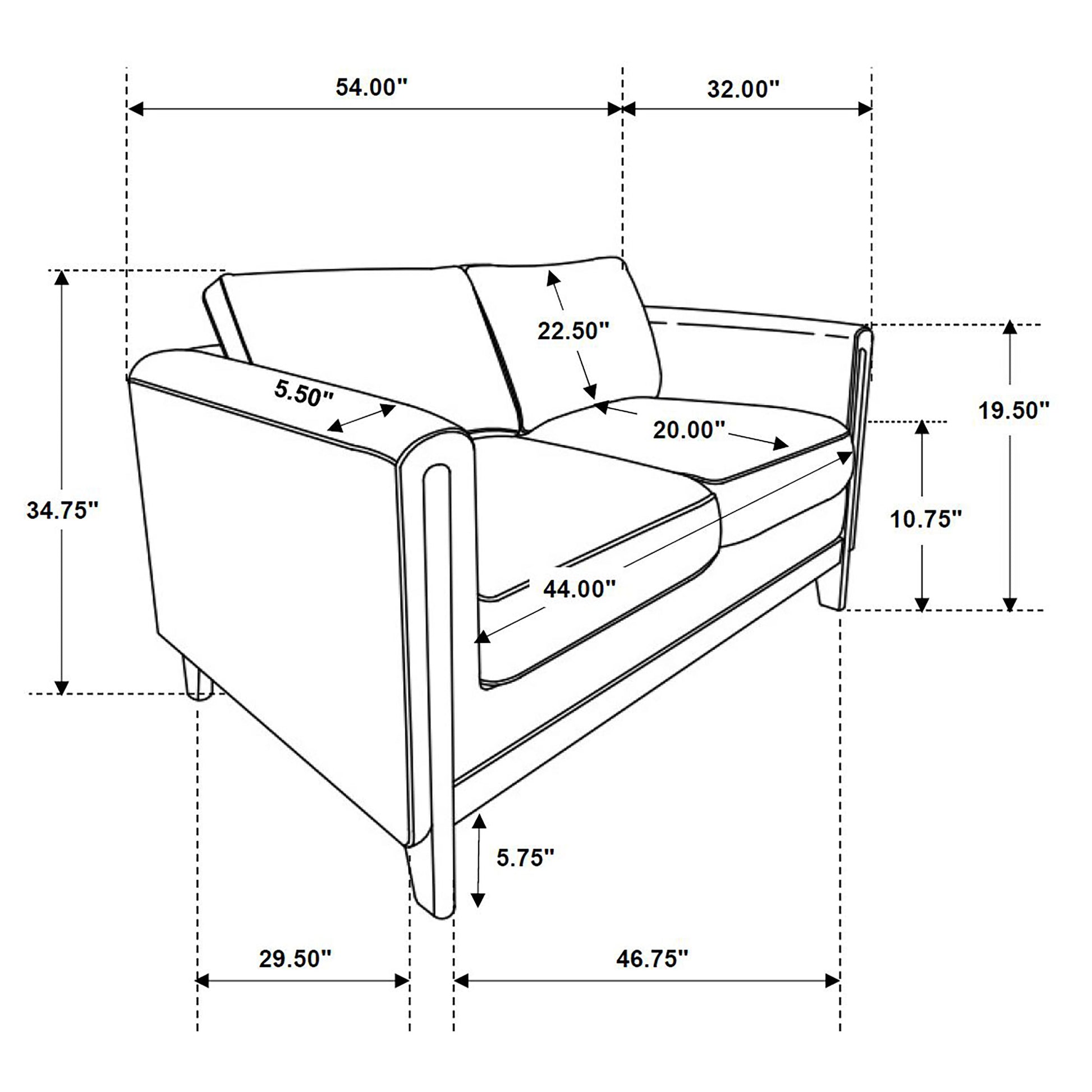 • Loveseat features a low-profile design with clean lines and recessed panel arms