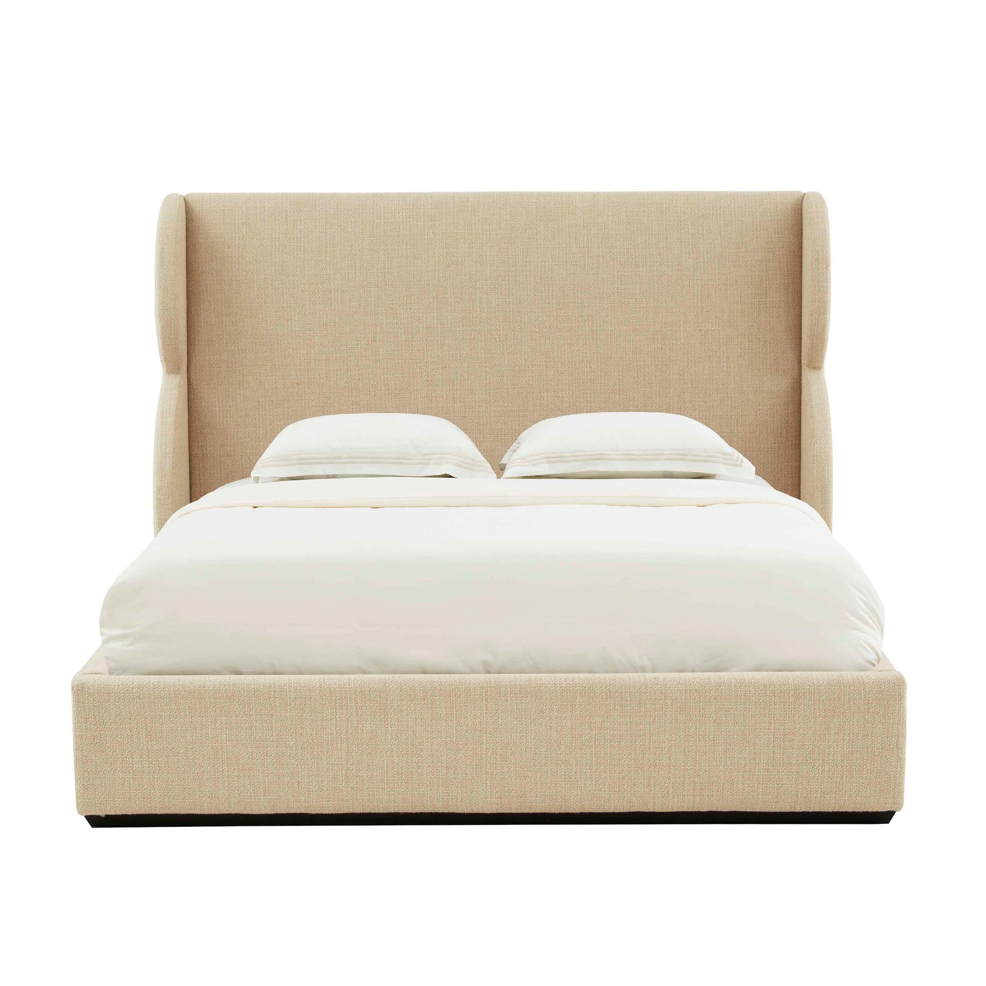 Rest comfortably in elegance and style - introducing the stunning Jibriyah bed. Its kiln-dried pine frame ensures durability while the subtle yet charming scalloped wingback headboard and the dashing tweet fabric make this bed one of a kind. Available in queen and king sizes.