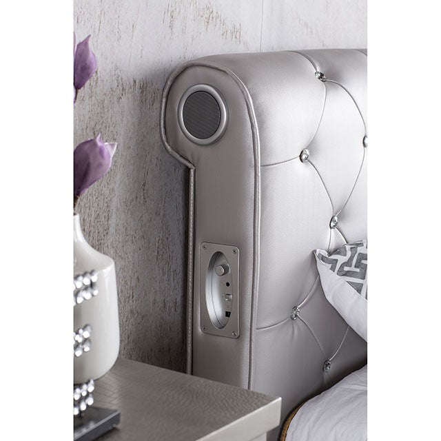Sharlance Queen Upholstered Panel Bed with Mirrored Dresser