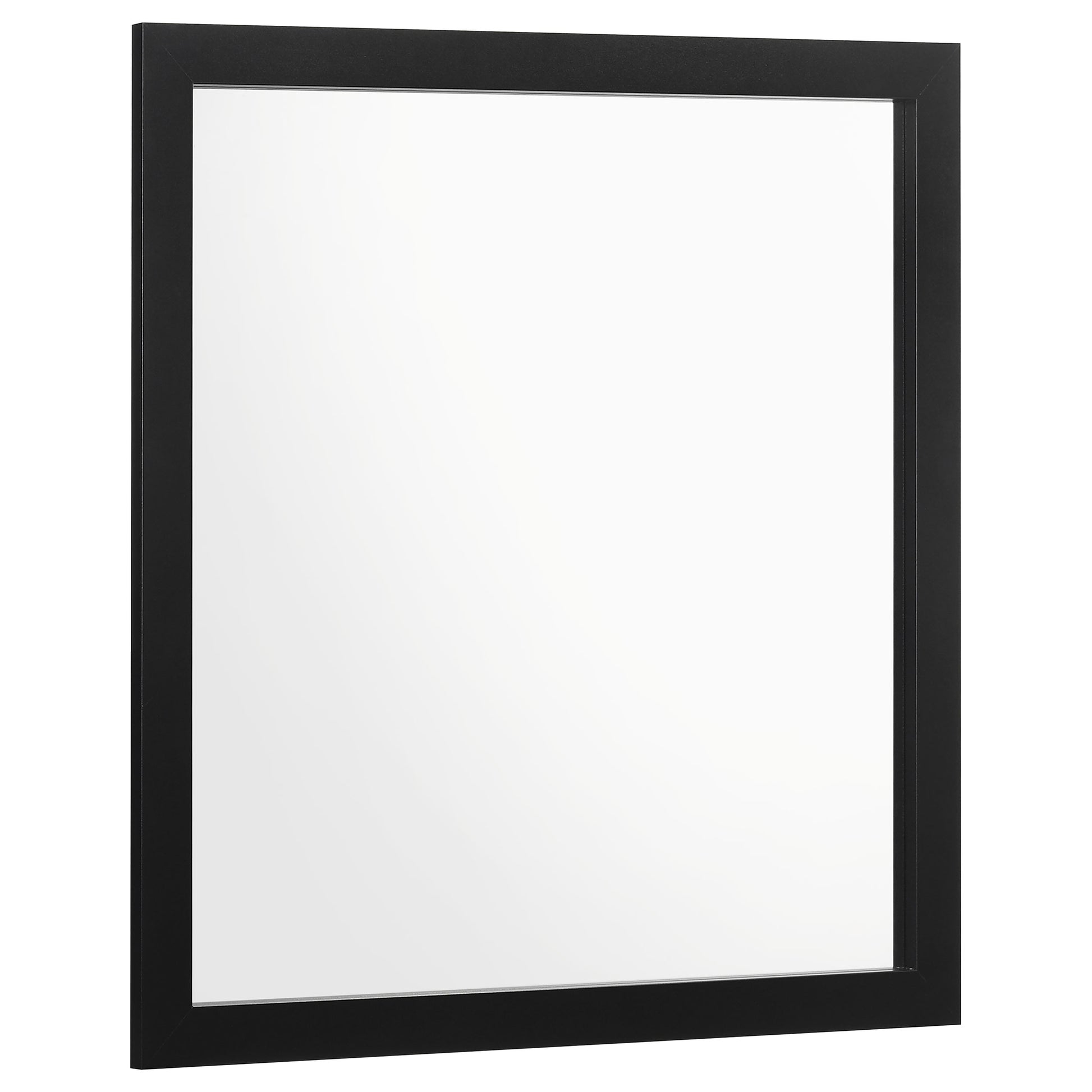 • Vertical, rectangular mirror adds height to the dresser and bedroom walls