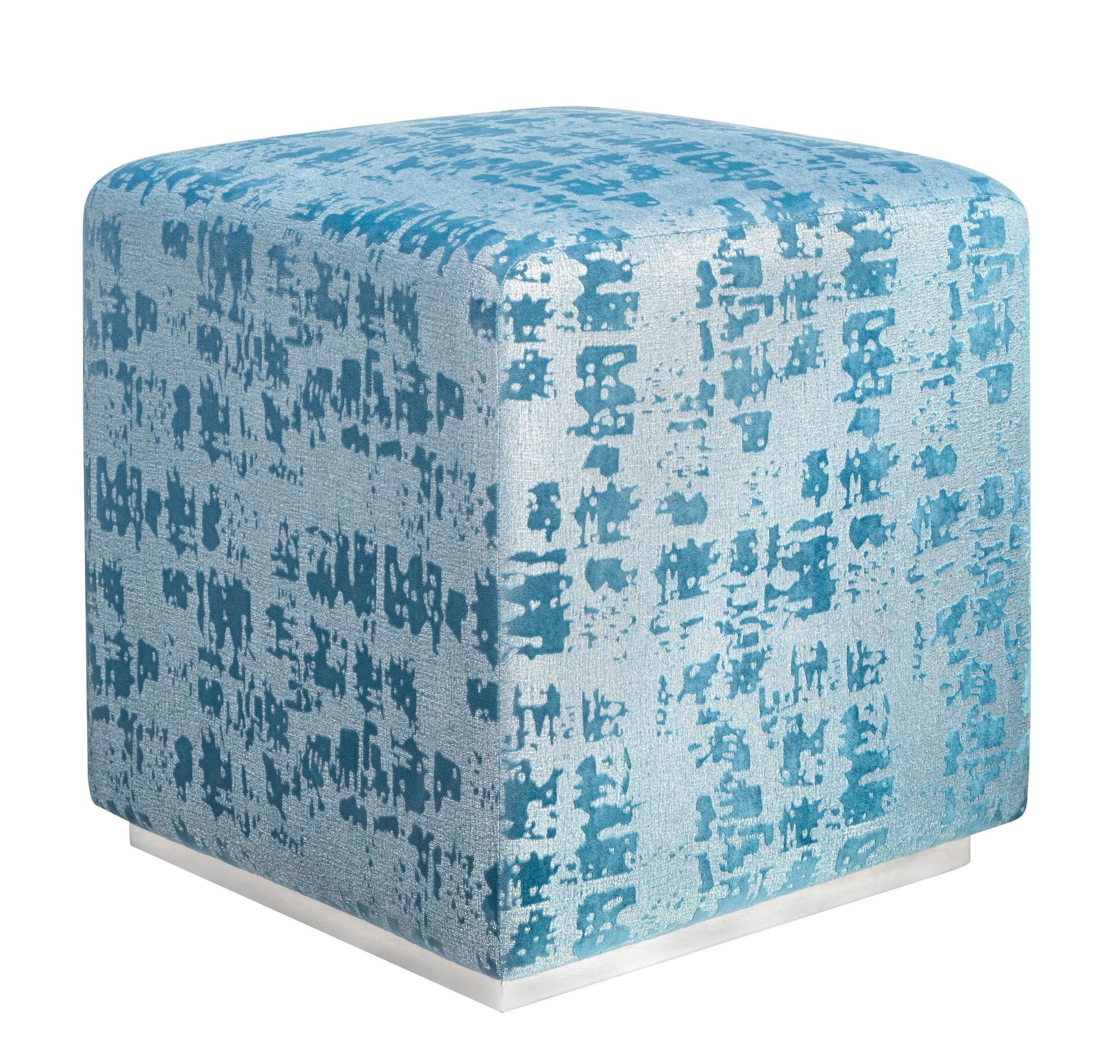 Inspired by Parisian art deco design, the Kent ottoman embodies a combination of timeless simplicity and luxury. These unique patterned velvets pair beautifully with the solid brass base, adding an element of glamour in just the right dose.
