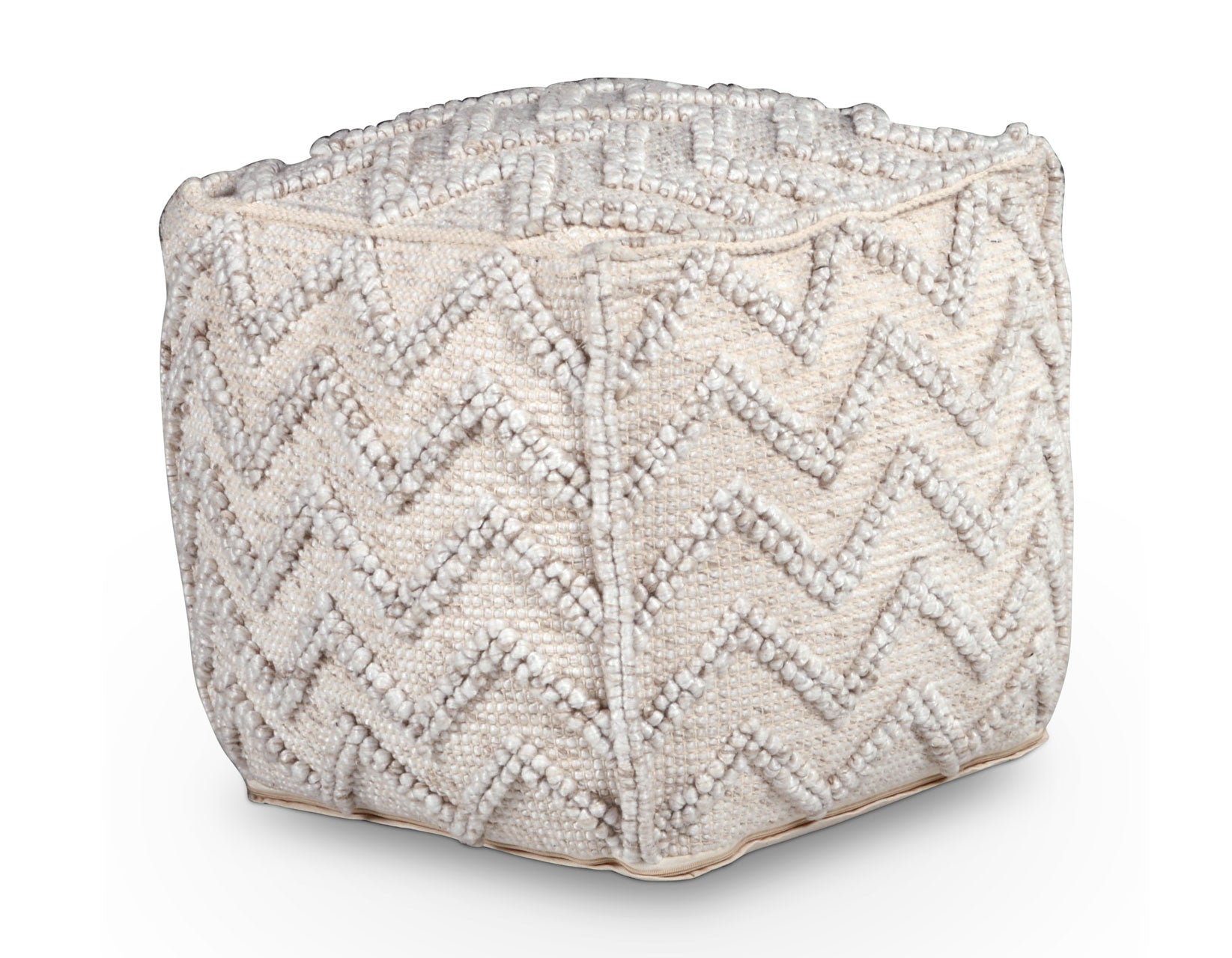 Kick up your feet with these handwoven pieces of fun! Poufs are great as a footrest, for extra seating or even to use as a pillow when laying on the floor. These stuffed, upholstered pieces are versatile and feature custom designs on each piece. The Kenzari features a hand-woven chevron pattern in a neutral color that blends without being boring. The shaggy pattern will soften a room while adding comfort and functionality to your style.