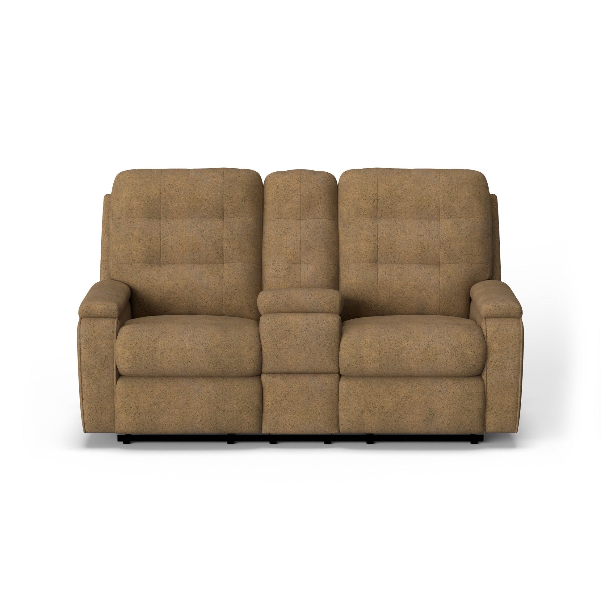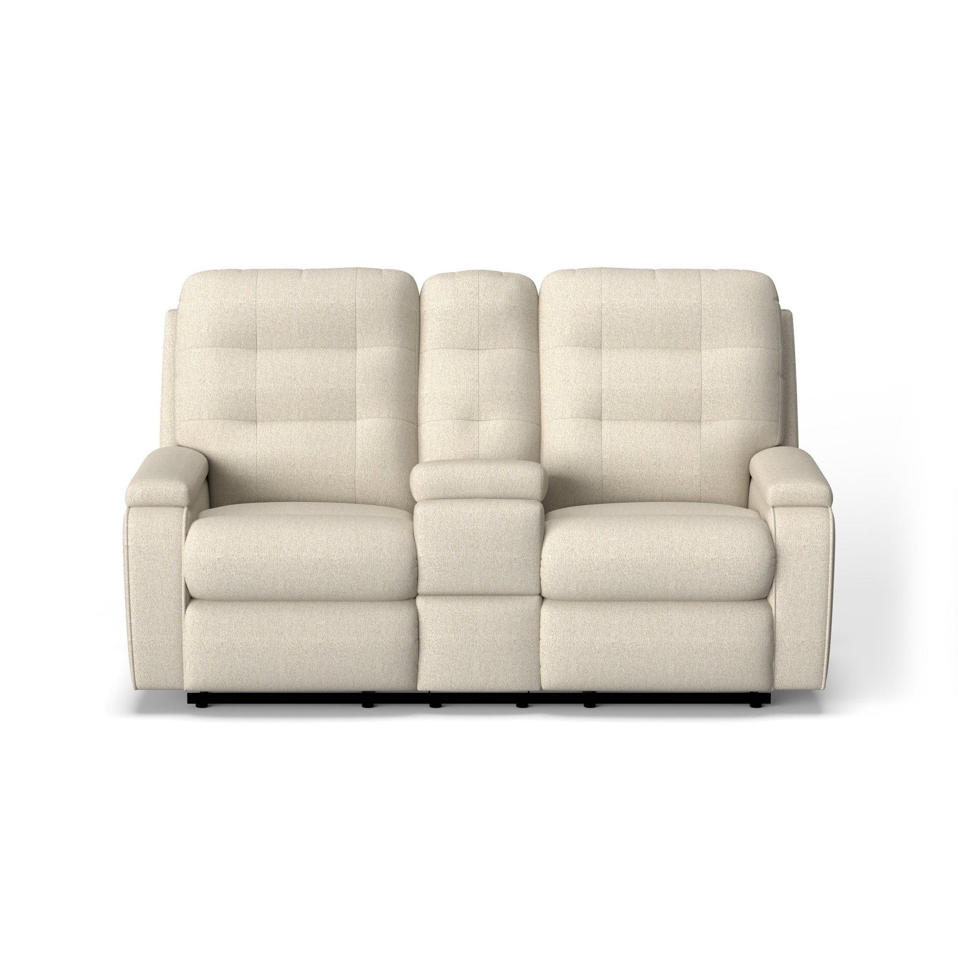 Kerrie should rest on a runway. It exudes the comfort, styling, and scale fitting of first-class seating on any airline. The recessed pad on the curved arm, the fully padded footrest, and the tufted back give Kerrie its superior comfort, support, and contemporary flair. A power reclining mechanism lets you change angles effortlessly from an upright to a fully reclined position with the touch of a button.