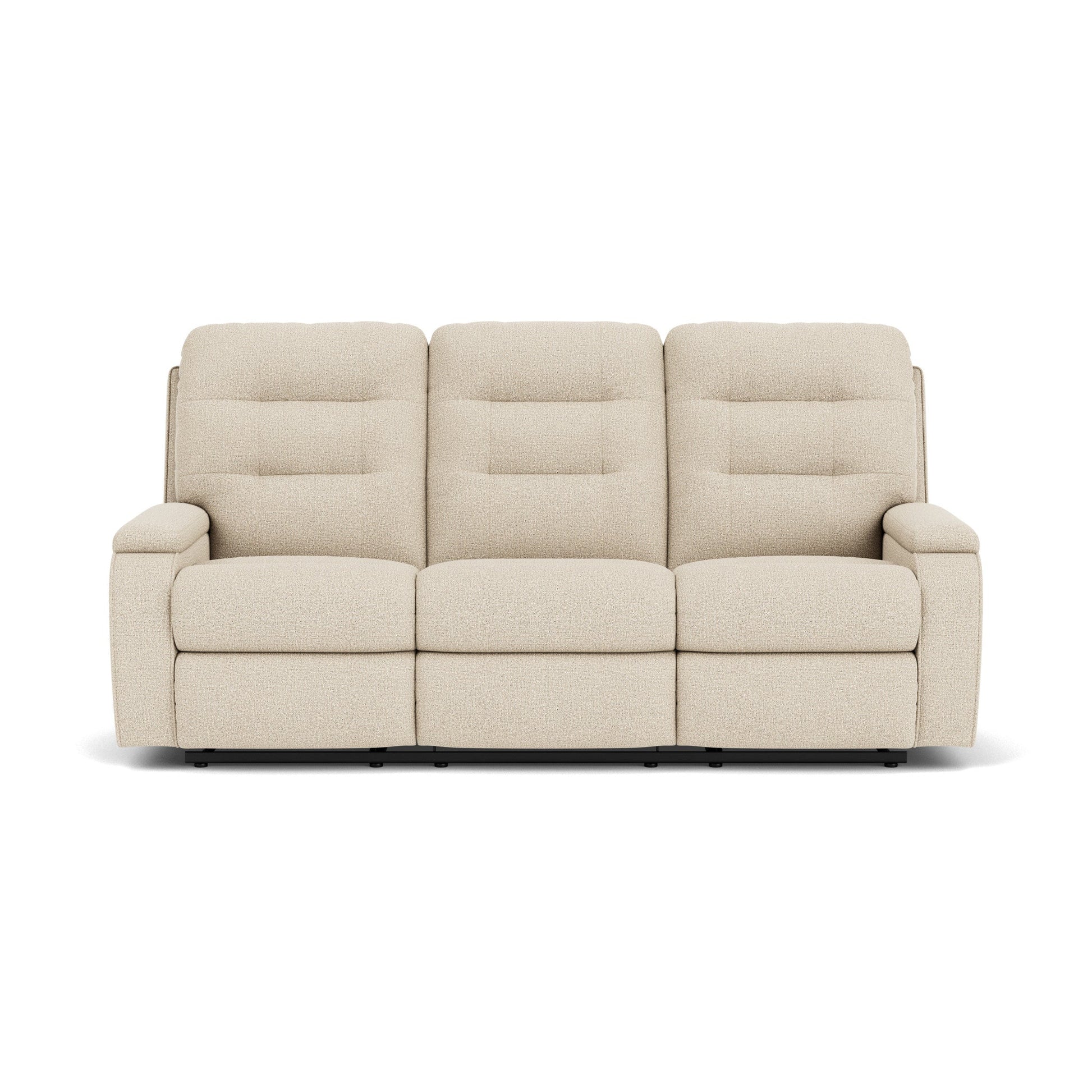 Exceptional comfort with refined contemporary style Kerrie should rest on a runway. It exudes the comfort, styling, and scale fitting of first-class seating on any airline. The recessed pad on the curved arm, the fully padded footrest, and the tufted back give Kerrie its superior comfort, support, and contemporary flair. A smooth reclining mechanism lets you change angles effortlessly from an upright to a fully reclined position. Available in more than 250 fabric options Also available in Performance fabrics - Revolution and LiveSmart Removable backs allow for easy lifting and maneuvering through doorways. Model Number: 2806-62 Dimensions 43H x 86W x 41L