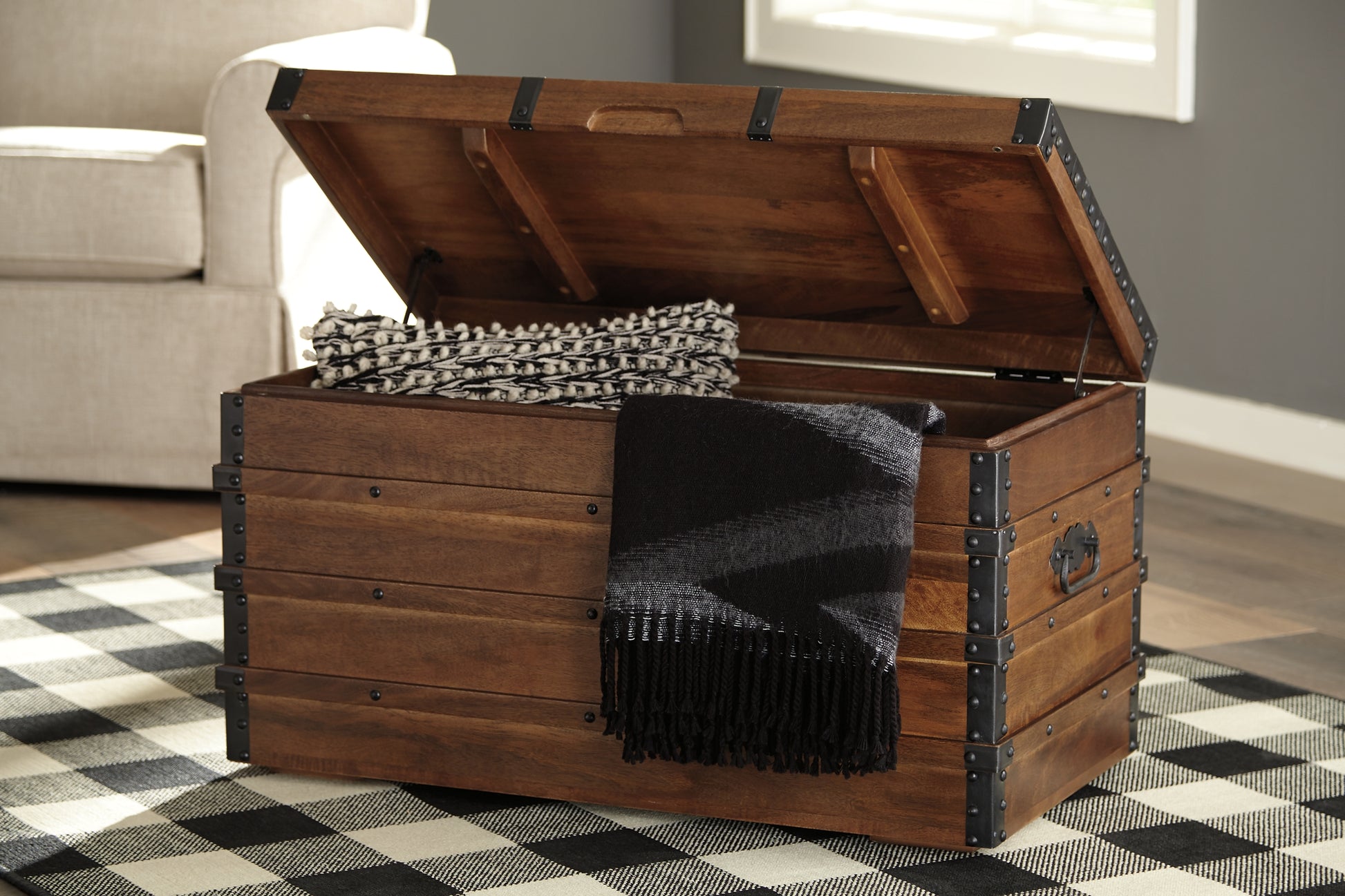 | Details | Made of wood, Black finished metal hardware, Hinged top with storage, No assembly required | |