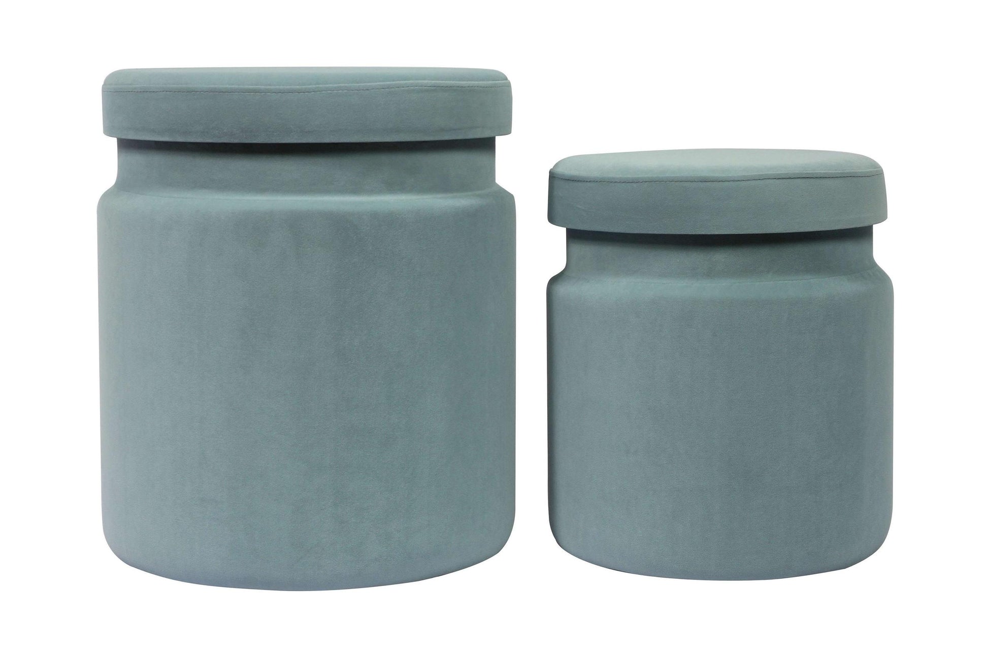 Add a burst of functional style to your space with the Kris storage ottoman set. It's playful color options, plush velvet upholstery and varied heights allow it to complement any decor.