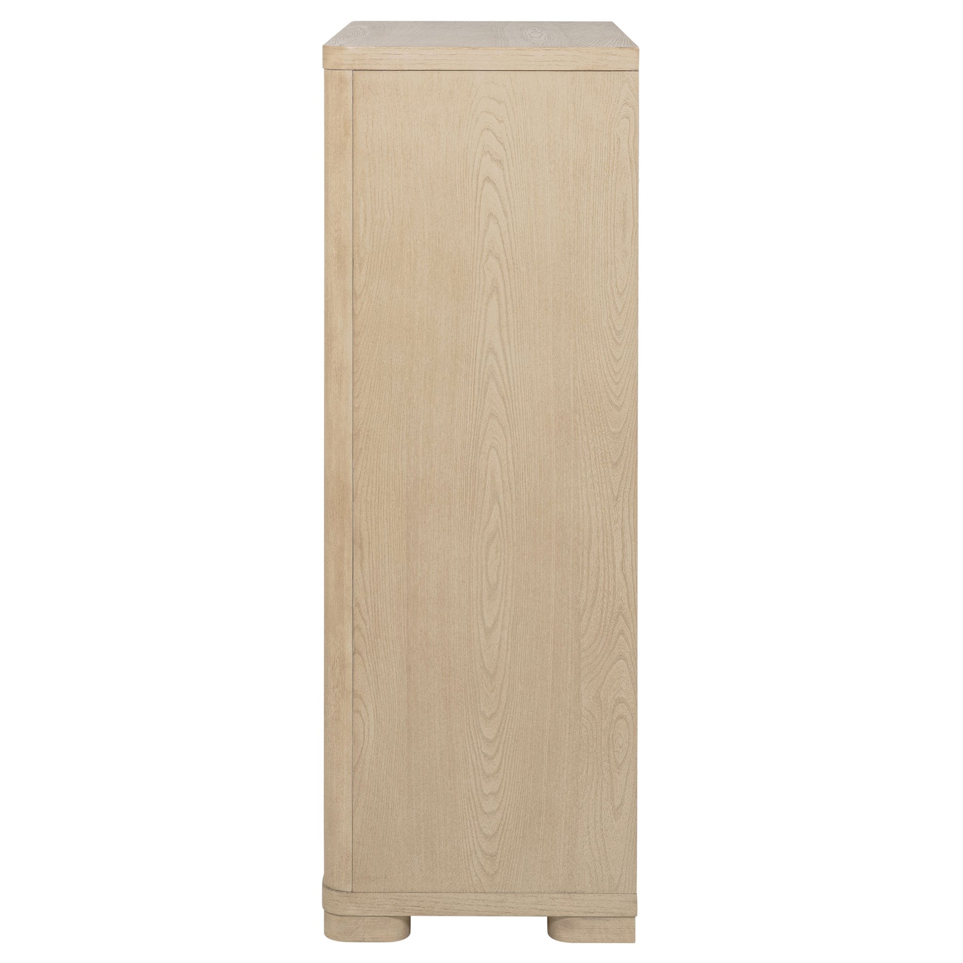 • Five-drawer chest with a light elm finish for a contemporary, stylish look