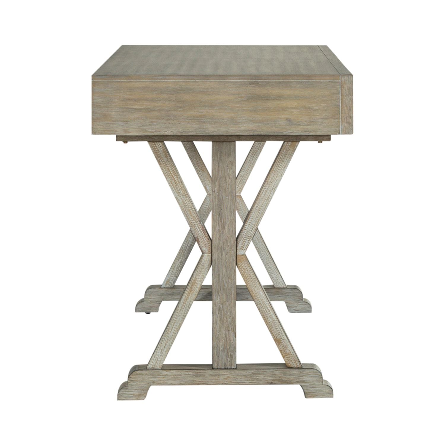 Feel at home while you work from home with the Lakeshore writing desk. Crafted with excellence using rubberwood solids and white oak veneers, this desk features a Wire-Brushed Washed Taupe finish. The desk has two full extension drawers accented with Dark Pewter knob hardware. The architectural style base features X-accent end panels. This desk is available in multiple finishes. Feel comfortable and elegant at the same time with the Lakeshore writing desk.