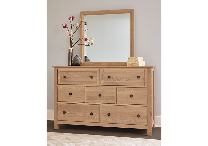 Made in the USA; The landscape mirror shown in a clear oak finish makes a beautiful accent piece to use alongside the coordinating dresser. Available in 5 quick ship finishes.