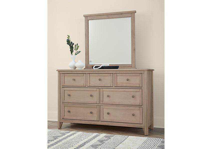 Complete your bedroom collection by placing this mirror on top of your dresser or chest. Featuring a frame crafted from solid wood and beveled glass